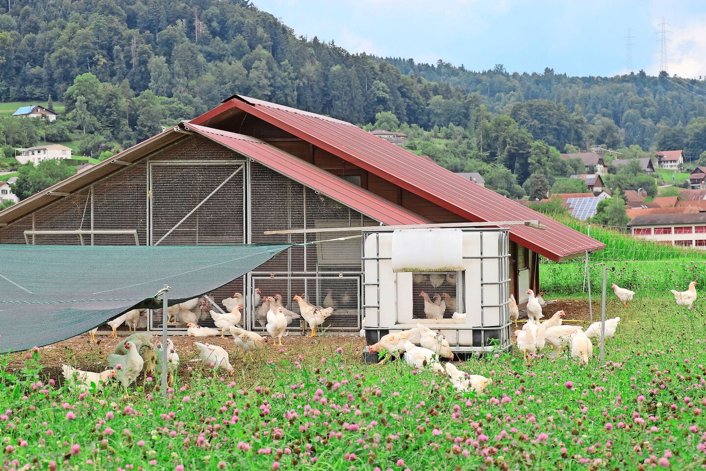 Nicht überall duftet es nach Kräutern. Wenn Daniel Steiner die Tür in den ehemaligen Kuhstall öffnet, riecht es strenger: Hier verbringen 2700 Küken ihre ersten drei Lebenswochen, bevor sie ins Freiland zügeln. Die mobilen Ställe sind auf der Kunstwiese in die Fruchtfolge integriert. Der Dünger ist willkommen, ebenso die zeitliche und finanzielle Kalkulierbarkeit dieses Betriebszweigs, der vor sechs Jahren dazu gekommen ist.
