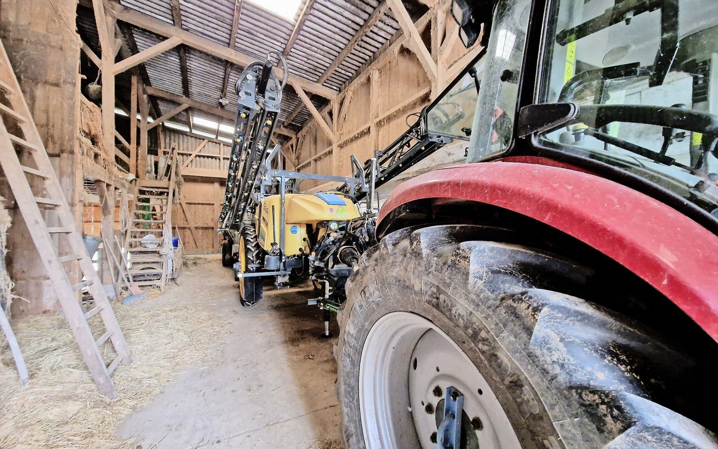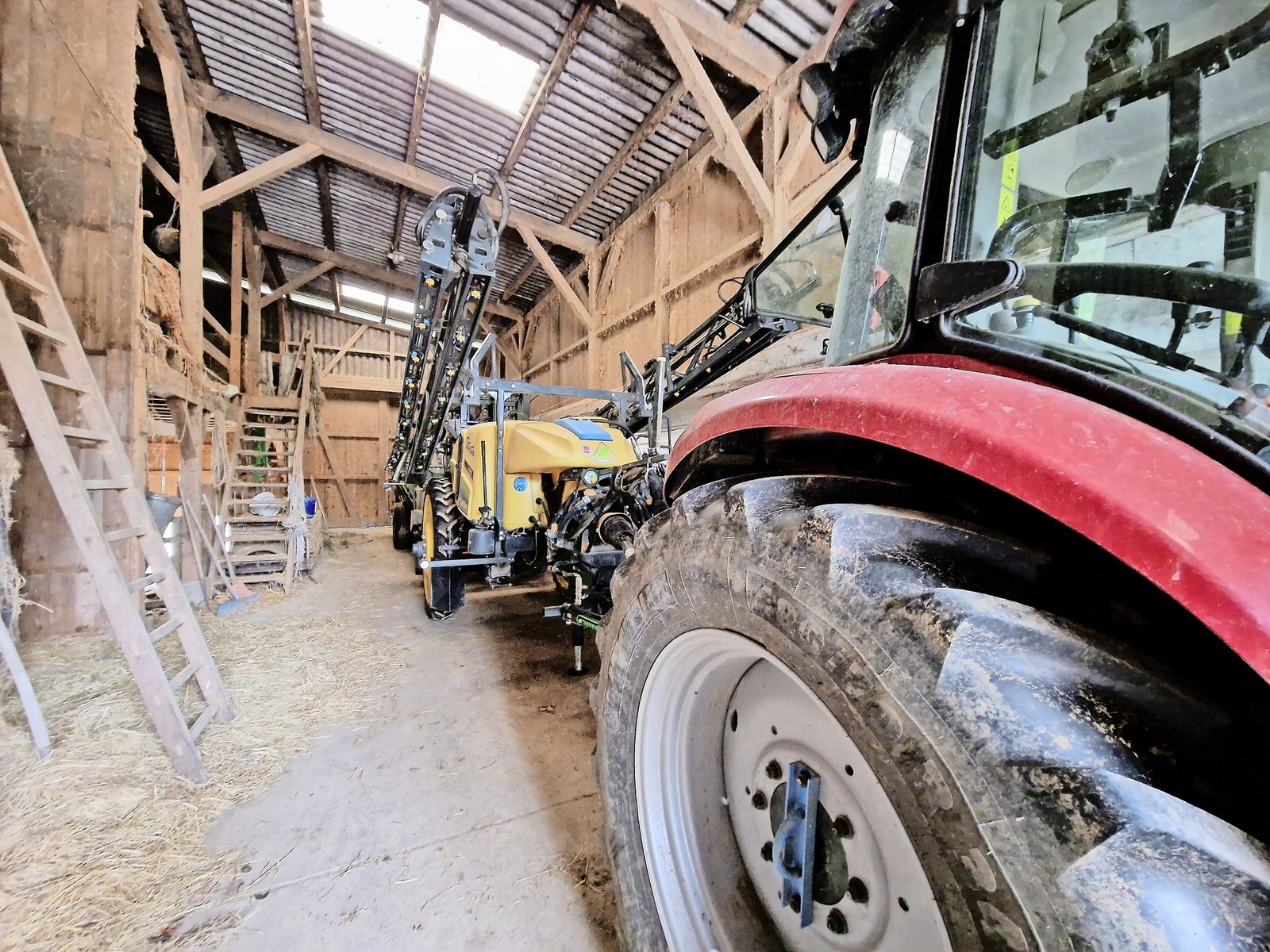 Im alten Anbindestall, wo 17 Kühe Platz fanden, steht eine gezogene Spritze, sektorengesteuert via GPS. Sie ist seit sechs Jahren im Einsatz. Angehängt am Traktor, braucht sie die halbe Länge der ehemaligen Tenne. «Wenn ich nach Pfyn fahren würde mit einer aufgesattelten Spritze, dann hätte ich nicht selten überladen – zudem ist die Pflegebereifung mit den aufgesattelten Spitzen bei solchen Strecken sehr rasch heruntergefahren», ergänzt er. Die grosse Spritze sei vermutlich die letzte Investition in den Maschinenpark gewesen, meint er.