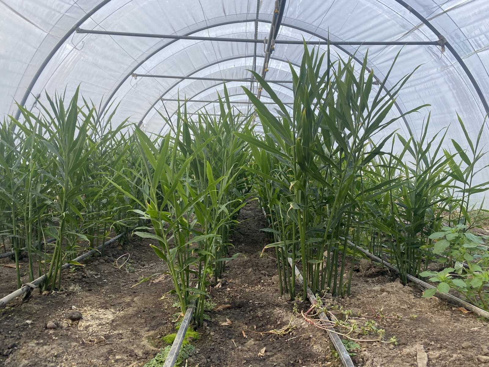 Auf zwölf Aren im Folientunnel wächst der Ingwer in diesem Jahr. Im Vergleich zu den vorigen zwei Jahren passten sie den Anbau nach unten an. Der Grund: Zu Coronazeiten gab es einen regelrechten Run auf die gesunde Knolle, der besondere Heileigenschaften nachgesagt werden. Die Wurzel ist nicht nur eine beliebte Zutat für asiatische Rezepte, auch im Erkältungstee wirkt die Pflanze wohl Wunder. Sie wirke antiviral sowie entzündungshemmend und vertreibe Übelkeit, ist in wissenschaftlichen Studien nachzulesen.