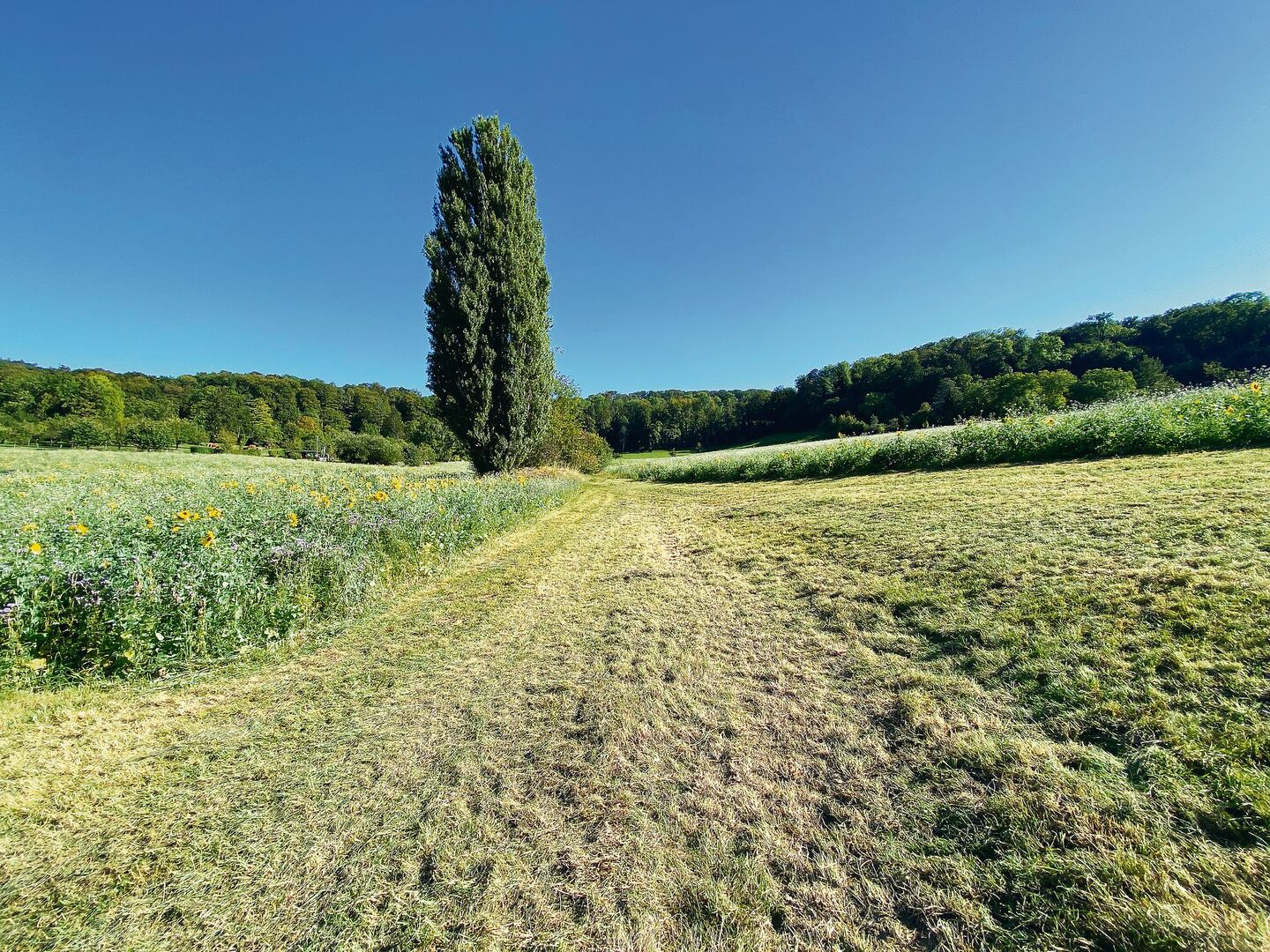 Unterhalb des Waldes plant Robin Fischer, die bestehenden Hochstämmer auf der Weide mit Apfelbäumen zu ergänzen und die Früchte für die Süssmost-Produktion zu nutzen. Ein weiterer Wellenbrecher bildet ein quer zum Hang angelegter Saum auf Ackerfläche, den der Landwirt dank einer Sonderbewilligung im Rahmen von Slow Water mehrere Jahre dort belassen darf. «Weil bereits weiter oben in der Geländekammer entsprechende Massnahmen angedacht bzw. bereits umgesetzt worden sind, reichen hier verstreut angeordnete Bäume aus», so Johannes Heeb.