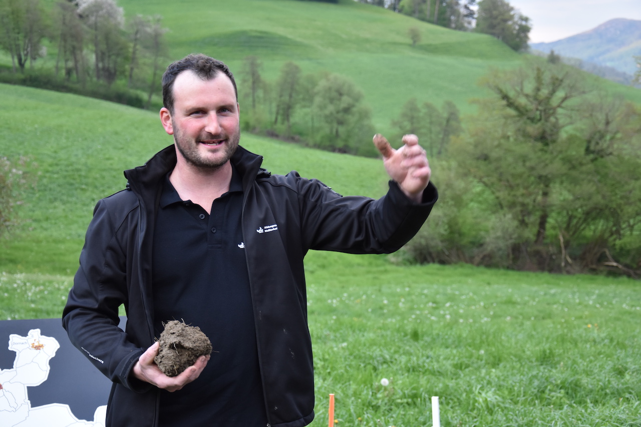 Den Futterbauflächen von Heinz Ledermann in Matzendorf SO sieht man den relativ wüchsigen letzten Herbst und die vergangenen warmen Wochen mit immer wieder Regen an: Wallierhof-Berater Samuel Tschumi reichte der Bestand bis zum Stiefelschaft. «Das Unkraut ist allerdings mitgewachsen», gab er zu bedenken und wies die Anwesenden an der Flurbegehung des Landwirtschaftlichen Bezirksvereins Thal am vergangenen Dienstag (2. Mai 2023) auf Ehrenpreis, Taubnessel und Hühnerdarm hin.