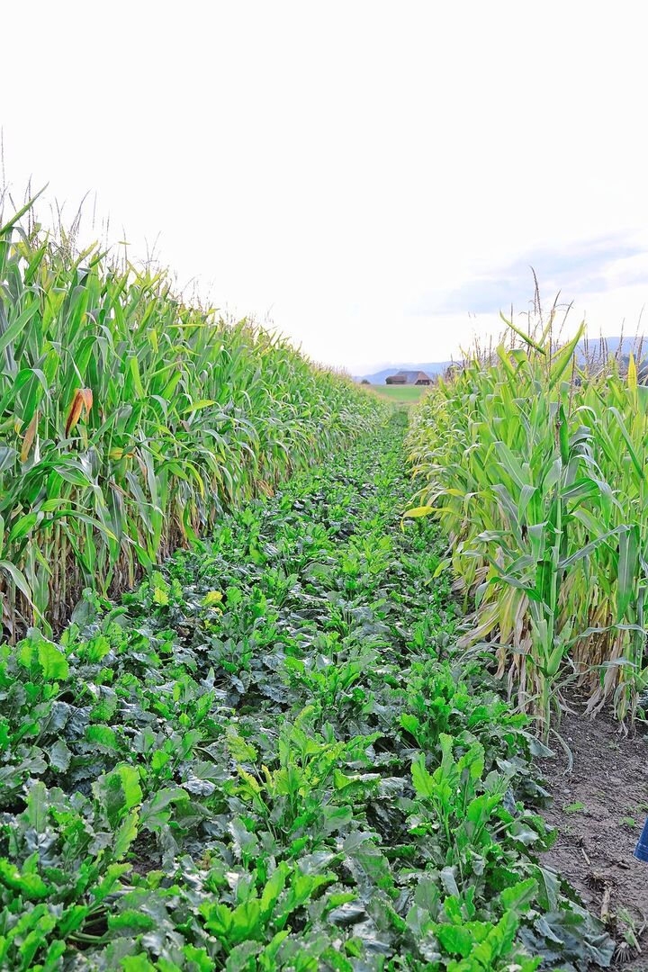 Heuer ist Reusser am Projekt Staffelkulturen beteiligt. Die Kombination von Zuckerrüben und Mais auf demselben Feld verwunderte insbesondere auch die ausländischen Gäste.