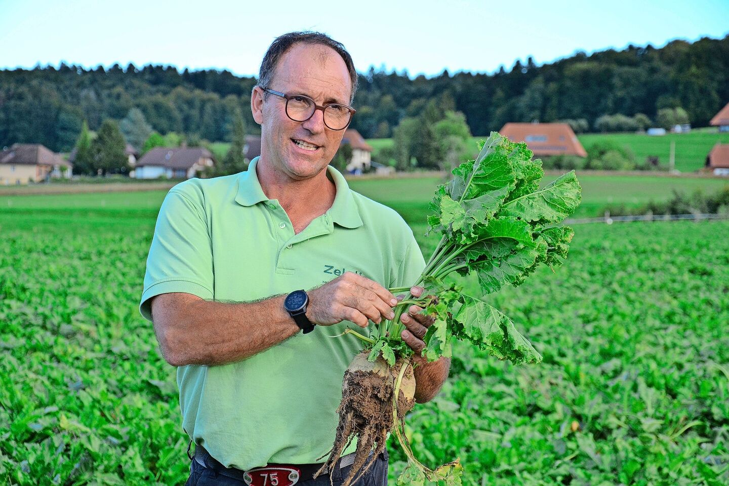 «Maschinenmässig ist es aufwändig, aber machbar», bemerkte Hanspeter Lauper. Der Lohnunternehmer aus Wiler bei Seedorf BE wird die Staffelkultur in Biezwil ernten, daher sind die Anzahl Rübenreihen und die Abstände auf seinen Drescher ausgelegt. Es handelt sich um Smart-Rüben, was die Unkrautkontrolle erleichtert. Die Düngung erfolgte unterfuss.