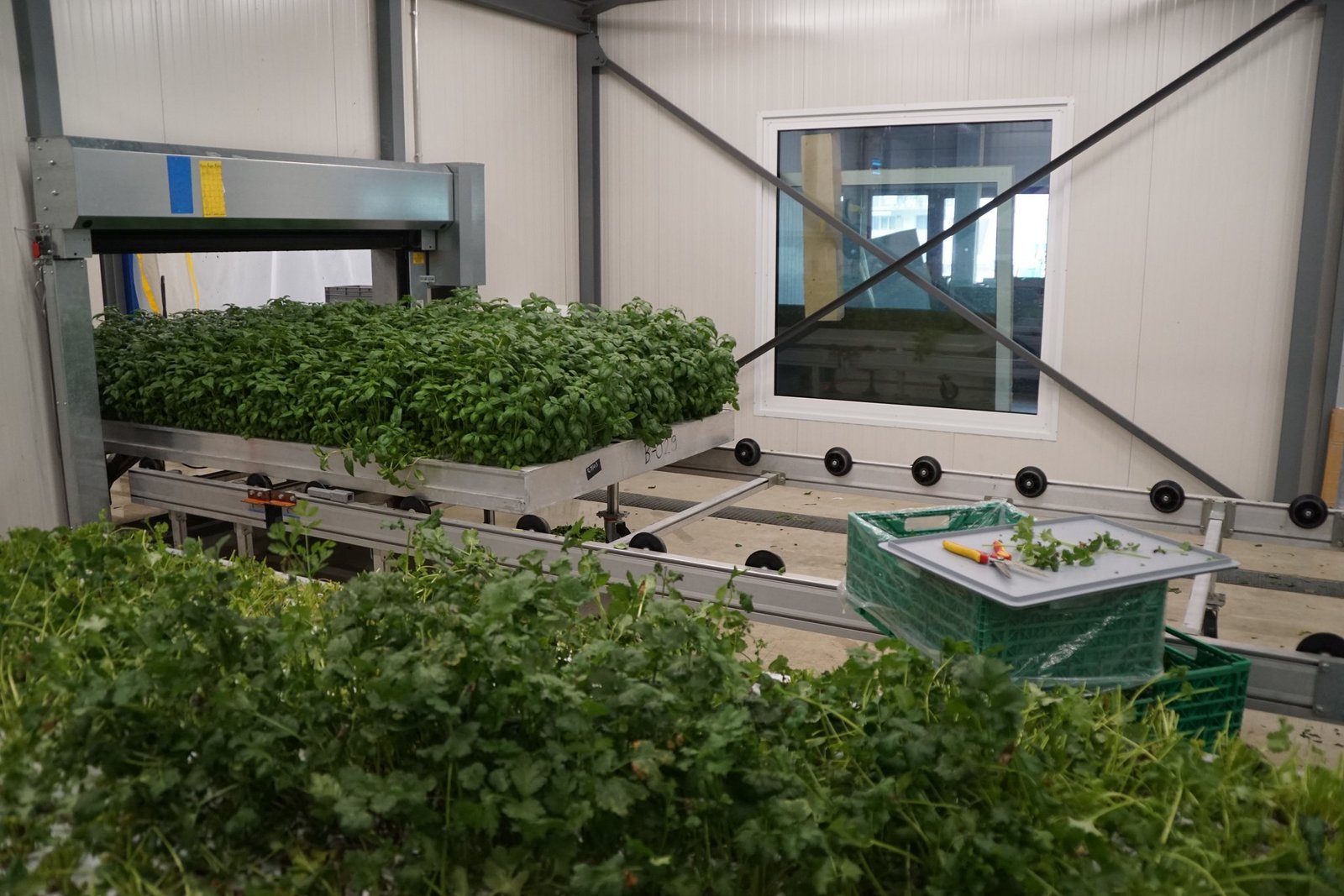 Nur wenige Kilometer von Samuel Müller entfernt befindet sich im zürcherischen Niederhasli der Betrieb Yasai, der japanische Name für Gemüse. Hier wachsen Kräuter wie Basilikum, Pfefferminze, Dill und Koriander auf Pflanz-Tischen, die in einer hohen Halle in sechs Etagen übereinander stehen. Daher der Name vertikale Landwirtschaft oder Vertical Farming. Es sieht aus wie in einem Hochregallager. Dank des Anbaus auf verschiedenen Etagen lässt sich bei der Bodenfläche sparen.