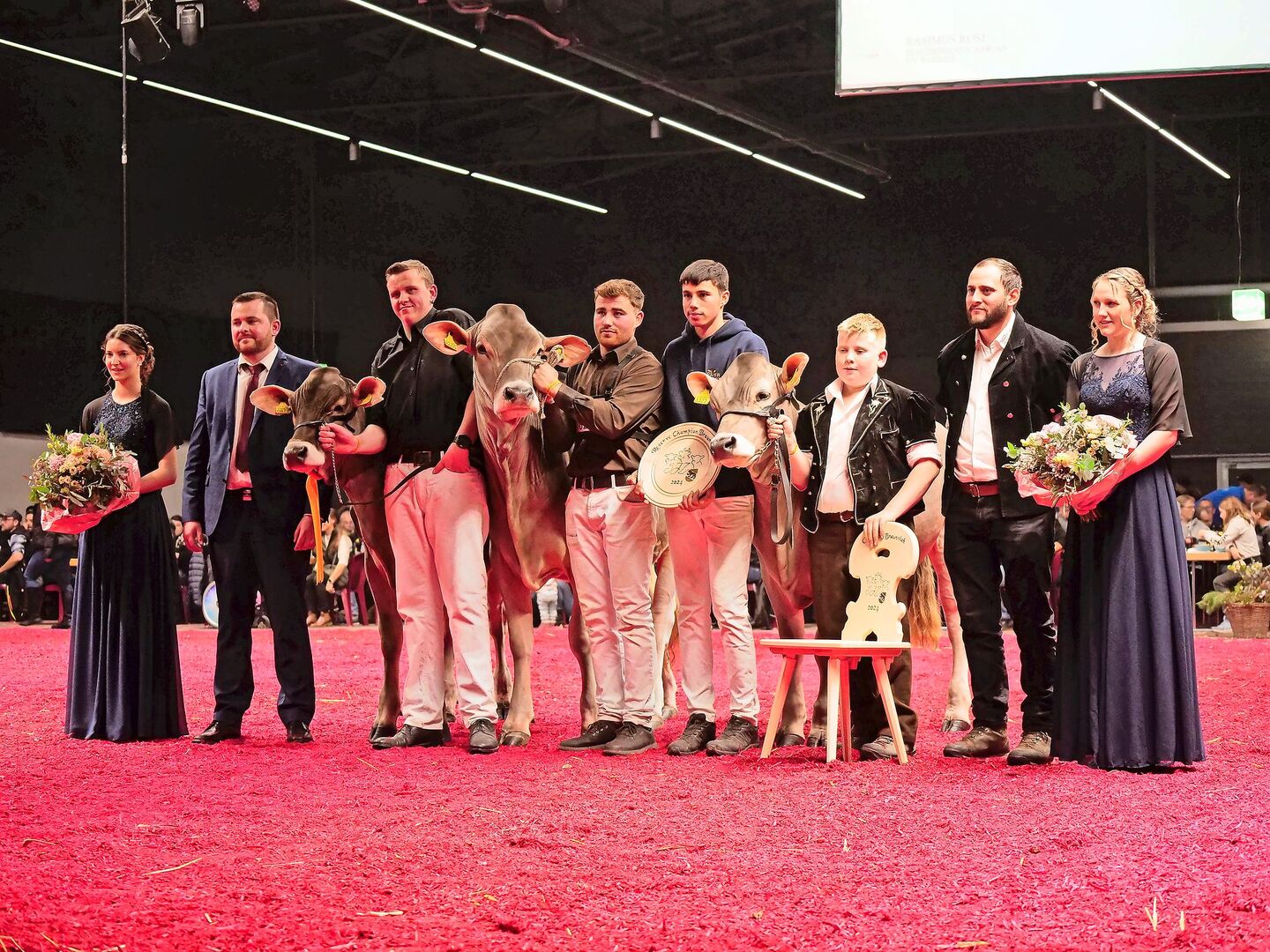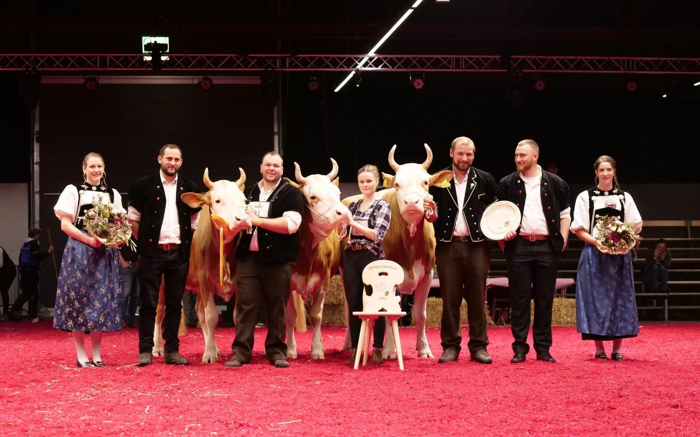 Das Highlight der zweitägigen Ausstellung waren die Championwahlen der Rinder am Samstagabend, die vor vollbesetzter Tribüne und Festbänken stattfinden durfte: Von jeder der fünf Rassen wurden die drei schönsten Rinder ausgewählt. Die fünf Champion-Rinder durften anschliessend um den Suprême-Titel kämpfen und sich bei Lichterspiel, epischer Musik und künstlichen Nebelschwaden einmal mehr von ihrer schönsten Seite präsentieren.