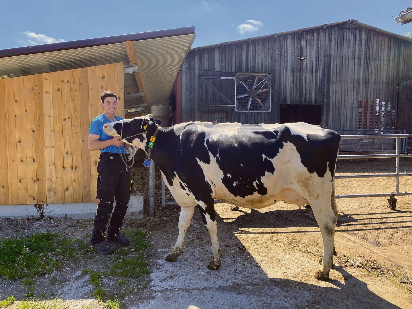 Fast alle davon hat Adrian Frauchiger von seinem Vorgänger übernommen. Es sind Holstein, der Vater hielt Braune, aber die meisten davon kamen wegen der Gelenke mit den neuen Verhältnissen (Laufstall, viel Weide) nicht zurecht. Auf die Frage, ob er die Braunen vermisst oder sein Herz jetzt für Holstein schlägt, zuckt er mit der Schulter und lacht. «Ein bisschen von beidem.»