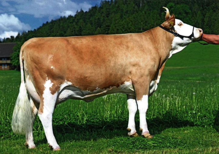 «Zurzeit haben wir fünf melkende Apollo-Kühe, mit denen wir sehr zufrieden sind», sagt der Reinzüchter. Eine von ihnen ist die bekannte KB-Stierenmutter Apollo Coni (55 55 98/EX-94). «Sie ist schon eine besondere Kuh», hält Ueli Oesch fest. Coni habe jetzt eine Lebensleistung von 71 134 kg Milch mit 4,84 % Fett und 3,95 % Eiweiss. Coni ist auch die Mutter der KB-Stiere Corvi und Calvaro.