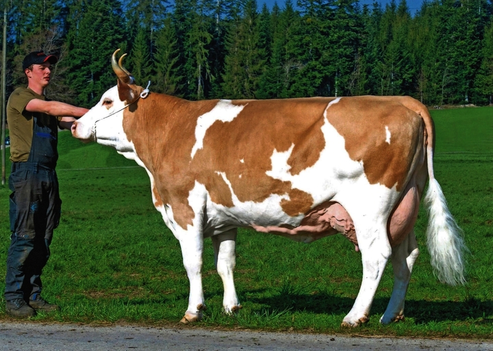 Bevor dieser Stier zu Swissgenetics kam, war Volfleur bei ihnen im Natursprung im Einsatz. Aber auch der Stier Peter habe bei ihnen sehr schöne Töchter hinterlassen. Viel Milch und hohe Gehalte haben beide Stiere vererbt, genau das, was Oesch bei seinen Kühen sucht. «Wir züchten schon lange auf eine gute Milchleistung mit hohen Gehalten», erklärt er seine Strategie. Und diese Eigenschaften vererbt auch Apollo weiter, nur das Exterieur ist bei ihm noch viel besser. Weitere Pluspunkte von Apollo sind die Melkbarkeit, der ruhige Charakter, die Substanz und die Langlebigkeit. Und: «Der Stier ist nicht nur auf schöne Kühe eingesetzt worden, sondern er wurde auf alles angepaart», so der Landwirt.