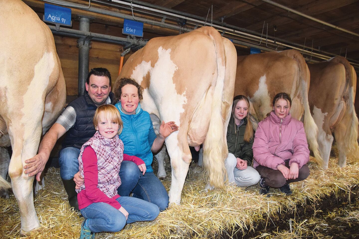 Die BauernZeitung durfte die Familie Oesch besuchen, ihren reinen Simmentalerbestand von zirka 40 Kühen bestaunen. Am Küchentisch erzählt Ueli Oesch, wie er zu seinem Apollo kam. «Apollo wurde am 1. Mai 2009 geboren», weiss der Züchter noch. Apollo stammt aus ihrer Volfleur-Tochter Alin (55 55 98) ab, sein Vater war Oeschs eigener Natursprungstier Peter. «Volfleur hat bei uns sehr gut funktioniert», so der Züchter weiter.