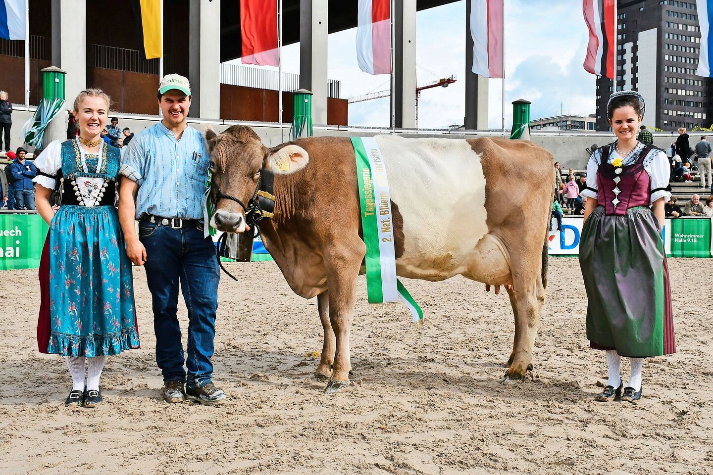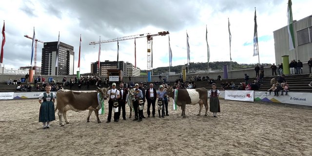 Dann kam die Finalrunde. Was für ein Anblick: Kühe mit geraden Rücken, stabilen Beinen, perfekten Eutern und wachem Ausdruck, die Gesundheit und Leistungsfähigkeit ausstrahlten. Auch für Heini Stricker war es offensichtlich nicht ganz einfach, aus diesen Prachtkühen, auf die, wie er sagte, jeder Züchter stolz sein könne, die Tagessiegerin zu erküren.