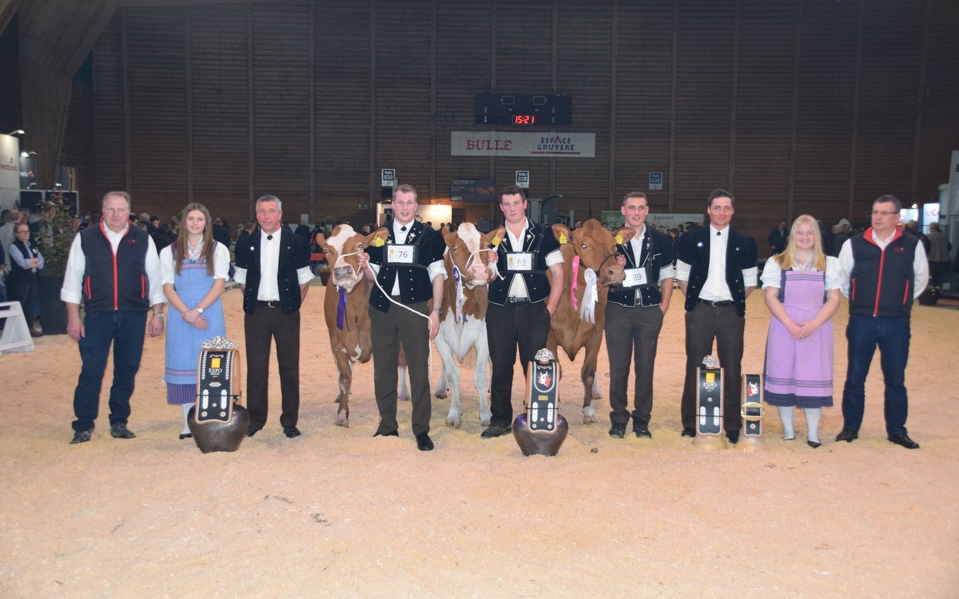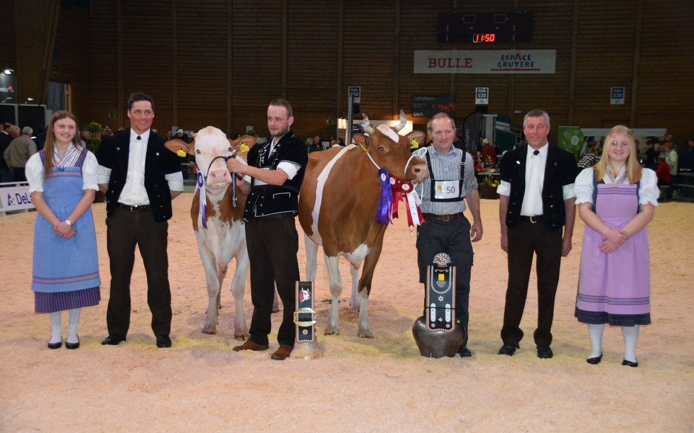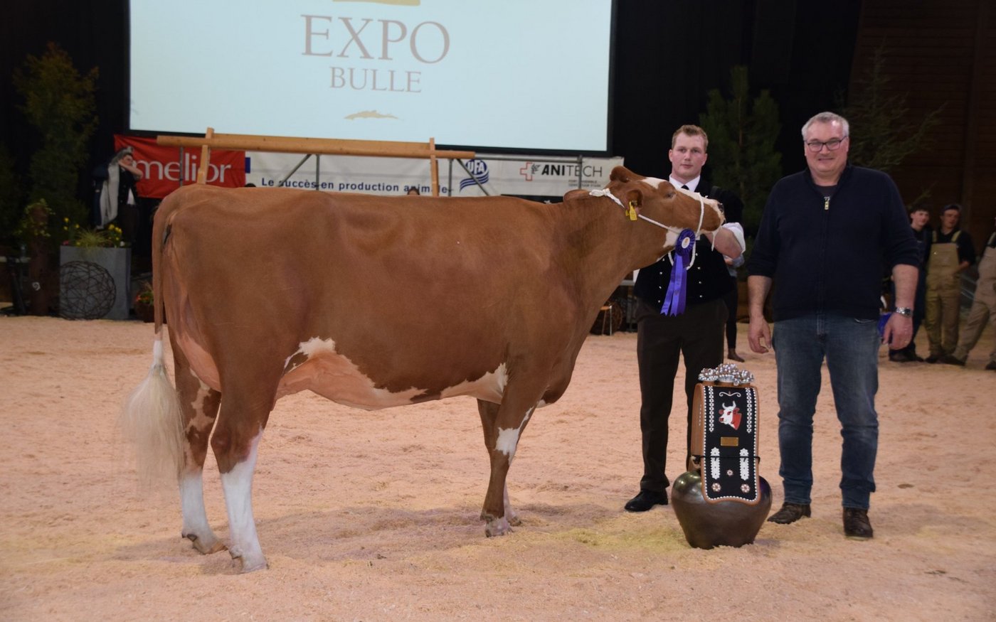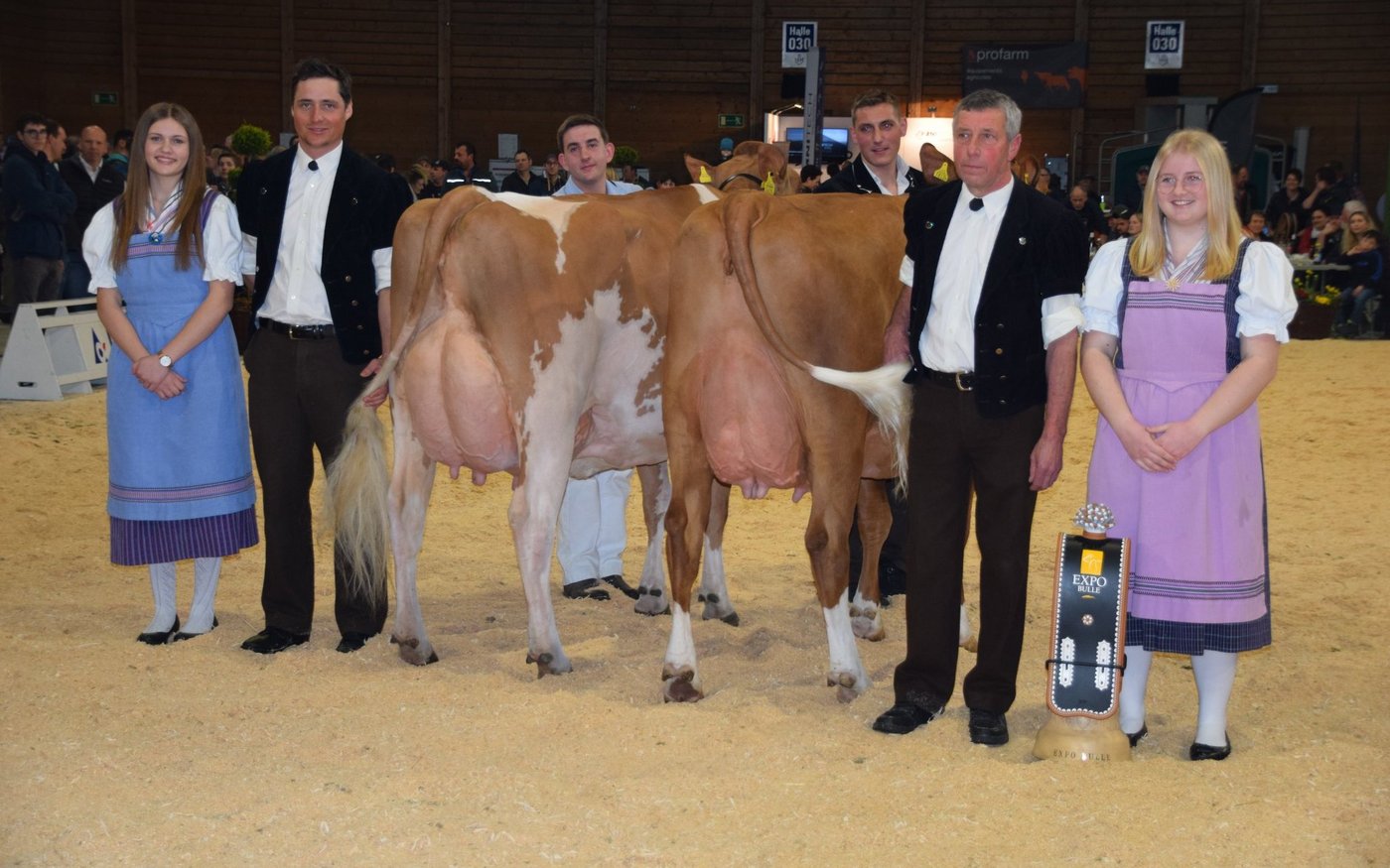 Der souverän agierende Richter Helmut Matti aus Turbach schwärmte in den grössten Tönen von der Swiss-Fleckvieh-Austellung an der Expo Bulle. Und in der Tat: Vor allem in den jungen Klassen wurden extrem schöne Tiere aufgeführt. In den älteren Kategorien hatten vor allem die Stiere Kilian, Aslan oder der Altmeister Odyssey das Sagen: Das Sagen hatte an diesem Tag auch die wunderschöne Schwarzbach Aslan Hanova von Florian Matter aus Rubigen BE. Mit ihren hervorragenden Typeigenschaften und dem Traumeuter wurde sie verdiente Grande Championne. Sie verwies die bekannte von Känel's Sf Gina von Adrian von Känel aus Aeschiried auf den Reserve-Platz. Mention Honorable wurde die super aufgeeuterte Kilian Corina von Beat Dürrenmatt aus Riedstätt. Corina holte verdientermassen den Schöneuter-Titel an der SF-Schau. Reserve-Schöneuter wurde James Tamiana von Bernhard Menoud, Môtiers NE.