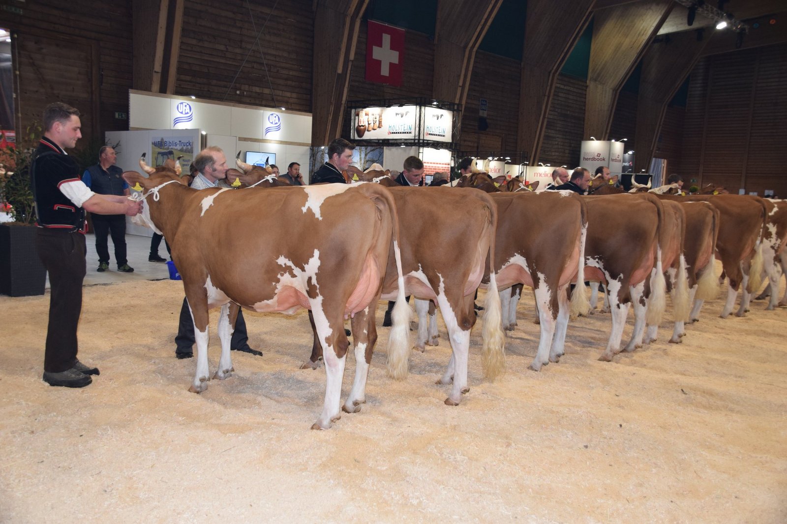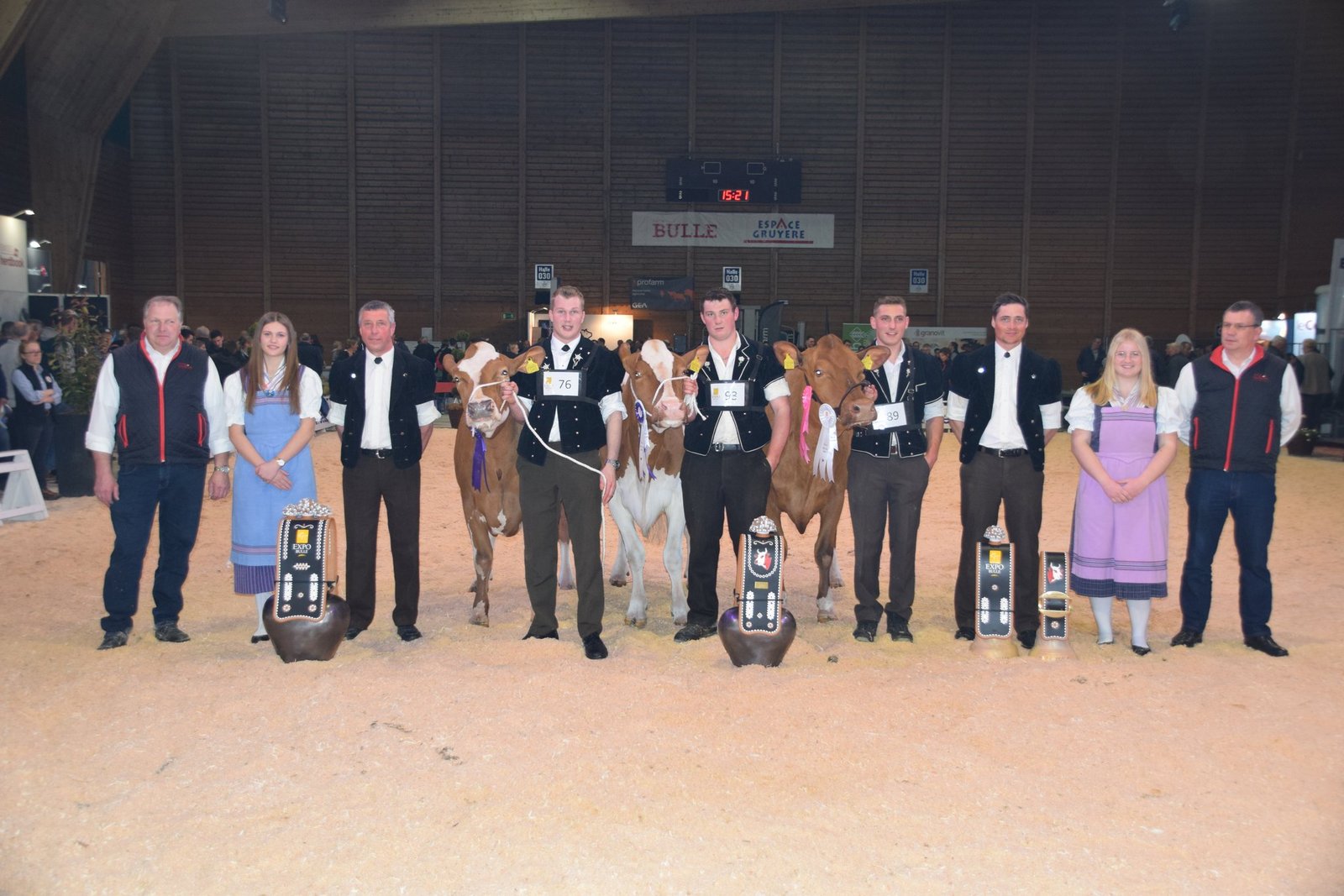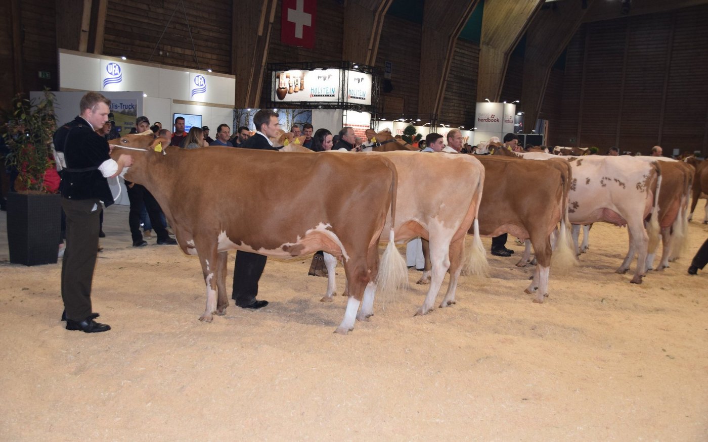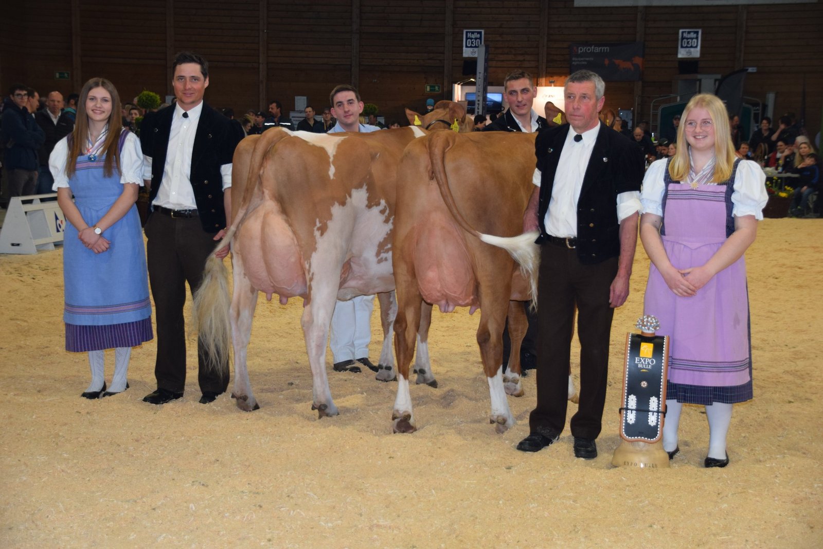 Der souverän agierende Richter Helmut Matti aus Turbach schwärmte in den grössten Tönen von der Swiss-Fleckvieh-Austellung an der Expo Bulle. Und in der Tat: Vor allem in den jungen Klassen wurden extrem schöne Tiere aufgeführt. In den älteren Kategorien hatten vor allem die Stiere Kilian, Aslan oder der Altmeister Odyssey das Sagen: Das Sagen hatte an diesem Tag auch die wunderschöne Schwarzbach Aslan Hanova von Florian Matter aus Rubigen BE. Mit ihren hervorragenden Typeigenschaften und dem Traumeuter wurde sie verdiente Grande Championne. Sie verwies die bekannte von Känel's Sf Gina von Adrian von Känel aus Aeschiried auf den Reserve-Platz. Mention Honorable wurde die super aufgeeuterte Kilian Corina von Beat Dürrenmatt aus Riedstätt. Corina holte verdientermassen den Schöneuter-Titel an der SF-Schau. Reserve-Schöneuter wurde James Tamiana von Bernhard Menoud, Môtiers NE.