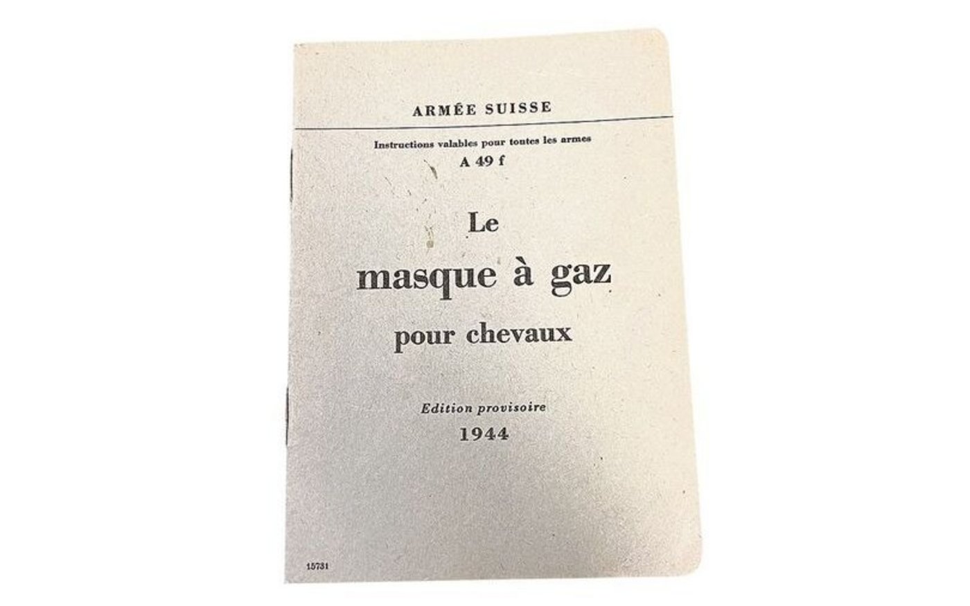 Wenn die berittene Truppe ihre Aufgaben wahrnehmen sollte, musste im Ernstfall nicht nur der Reiter, sondern auch das Reittier für alle Eventualitäten gerüstet sein. Folglich wurde nach internationalem Vorbild auch eine Schweizer Gasmaske für Pferde gefertigt, die ab 1944 zur Verfügung stand. Gefertigt wurden rund 6000 Exemplare, die grösstenteils aber bloss zu Übungszwecken Verwendung fanden. Zur Handhabung der Maske existierte – wenig erstaunlich für die Schweizer Armee – ein entsprechendes Reglement. Es gibt detailliert Auskunft über die Bestandteile, die «Montage» und das Anpassen sowie über die fachgerechte Reinigung der «masque à gaz puor chevaux».
