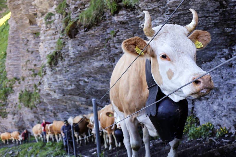 Das meiste Vieh war nicht zum ersten Mal dabei, deshalb eiferten die Tiere voller Vorfreude auf die saftige Alpweide den Berg hinauf. Die «Zügelte» braucht etwa anderthalb Stunden, wobei die Tiere und ihre Hirten insgesamt 600 Höhenmeter überwinden. Nach dem kräftezehrenden Aufstieg konnten sich die Kühe wohlverdient der saftigen Alpweide widmen. Ältere oder zu schwache Tiere wurden mithilfe der Transportbahn in das Alpenparadies befördert.