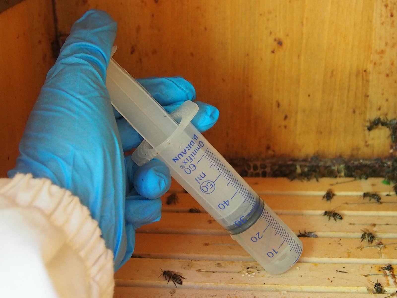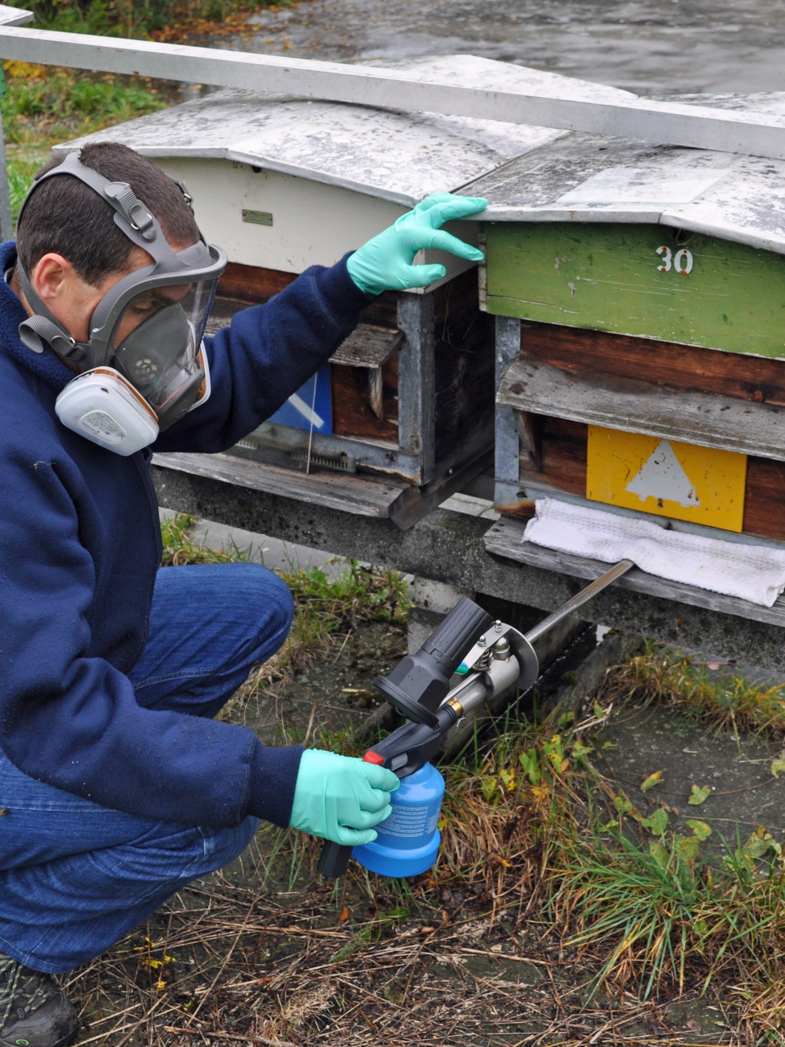 [IMG 4]Träufelbehandlung: Bei der Träufelbehandlung muss die Aussentemperatur unter 5°C liegen, die Wabengassen sollten frei von Wachsbrücken sein. Damit der Wirkstoff auf die nicht beträufelten Bienen weitergegeben wird, sollte die Wintertraube möglichst geschlossen sein. Eine Unter- oder Überdosierung vermeiden; letzteres kann zu einem erhöhten Totenfall führen. Pro Winter darf die Träufelbehandlung nur einmal angewandt werden. Ist eine zweite Behandlung notwendig, sollte auf Sprühen oder Verdampfen ausgewichen werden.