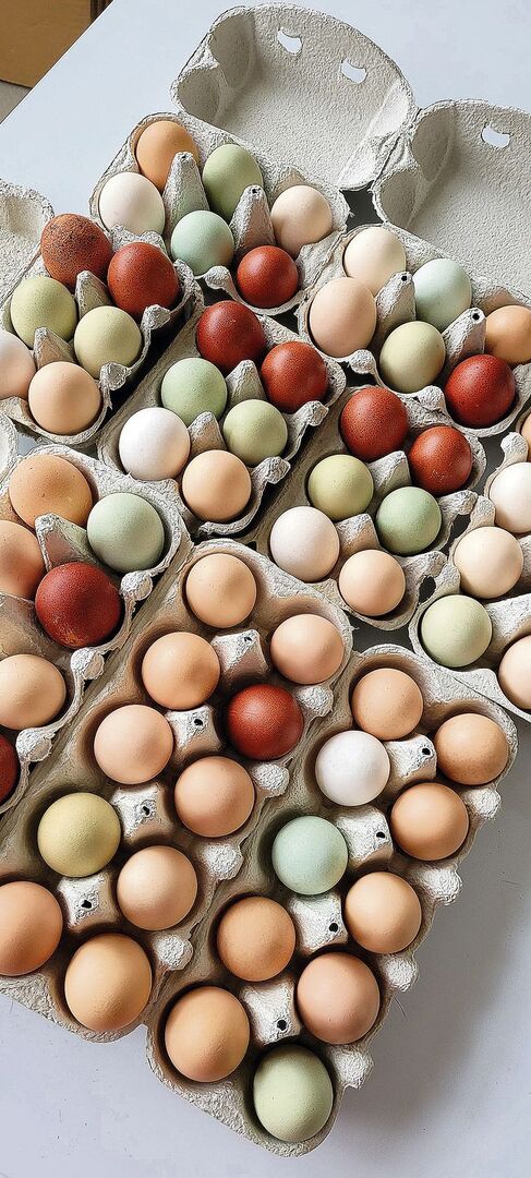 Überzählige und nicht rassentypische Eier, die nicht für die Zucht eingesetzt werden, verkauft Alexander Morf ebenfalls. Seine Produkte gibt es in einigen Hofläden, wobei er laufend das Gespräch sucht für weitere Abnehmer. «Meine Kunden sagen, es seien die besten Eier», meint er stolz. Während die Rasse für die grüne, braune, beige oder weisse Schalenfarbe und die unterschiedliche Grösse der Eier sorgt, sei das Futter entscheidend für den Geschmack. Der Züchter setzt auf Getreide aus einer regionalen Mühle, das mit einer eigenen Kräutermischung ergänzt wird. «Ausserdem», fügt Morf hinzu, «haben meine Hennen ausgezeichnete Arbeitsbedingungen mit mindestens acht Wochen Ferien pro Jahr.» Er spielt auf die Mauser an, jene Zeit, in der die Hühner ihr Gefieder wechseln und kaum mehr Eier legen. Nach zwei bis vier Jahren werden die Tiere als Suppenhühner verwertet.