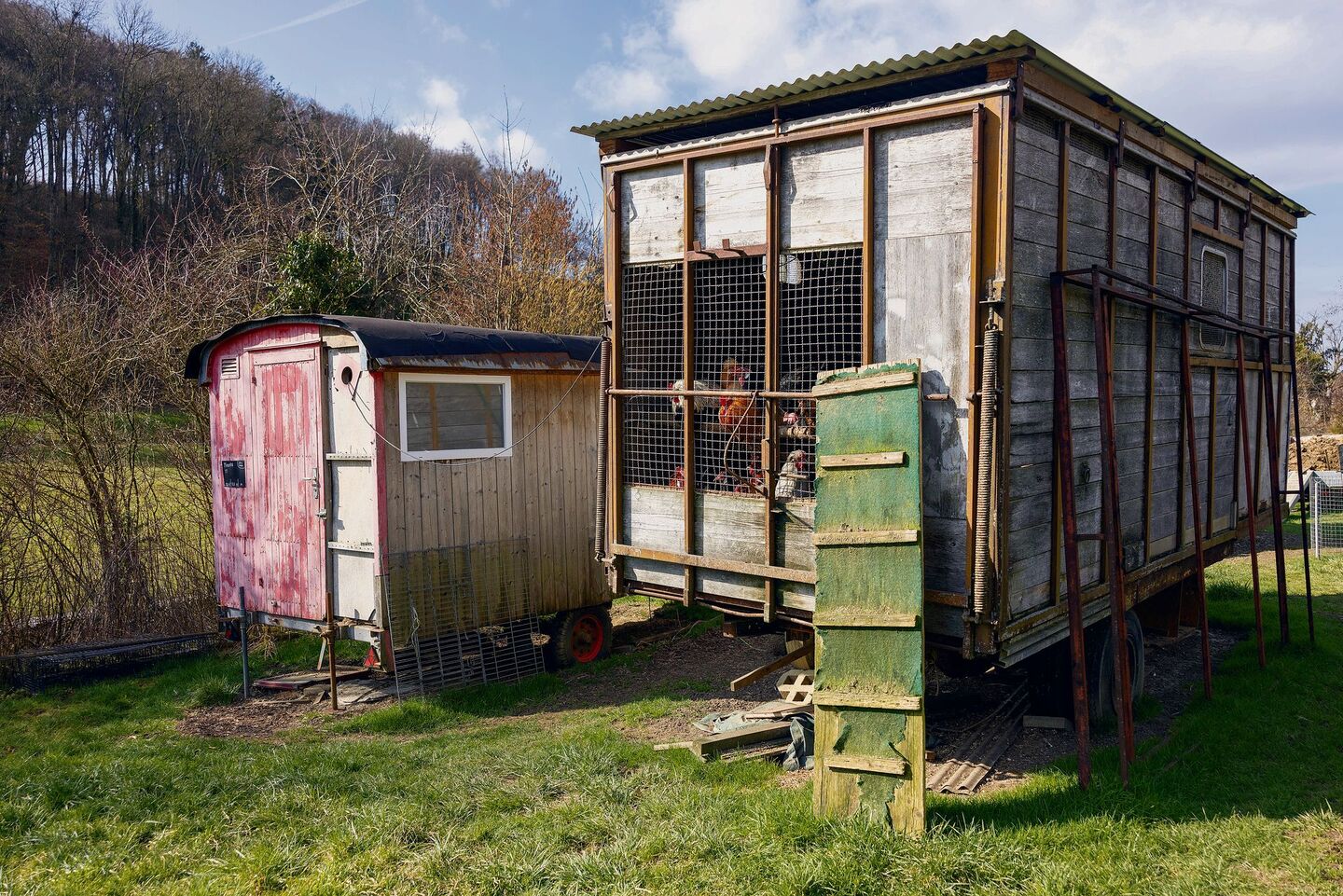 Es ist jedes Mal eine Überraschung, wenn Alexander Morf die Tür zu einem seiner zahlreichen kleinen, selbstgezimmerten Mobilställe öffnet. Zwar lässt das Gackern im Innern auf Hühner schliessen, aber ein «gewöhnliches» weisses oder braunes Huhn wird man hier nicht sehen.