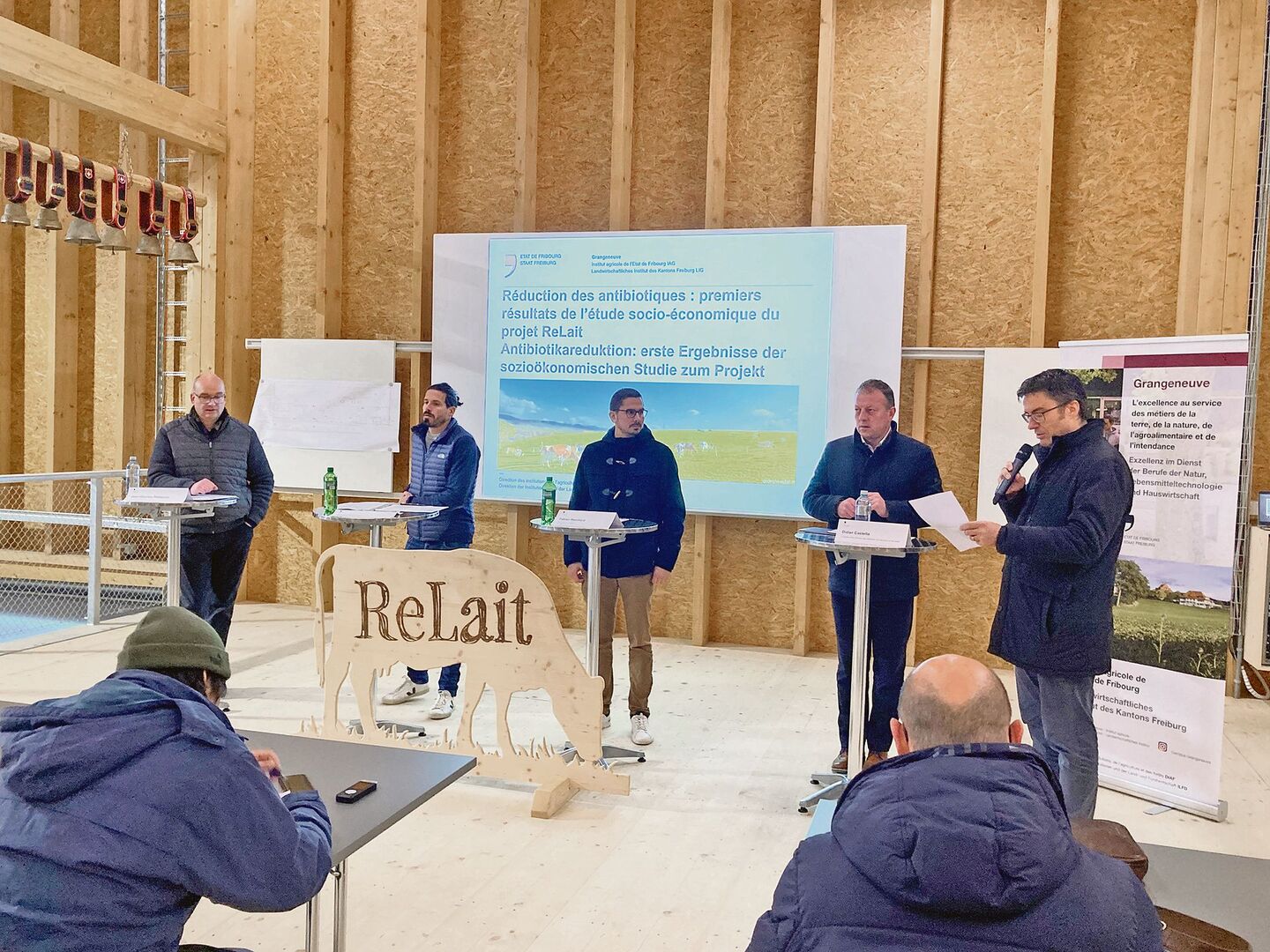 Seit vier Jahren läuft im Kanton Freiburg das Projekt ReLait zur Antibiotikareduktion in der Tierhaltung. Mit rund 60 beteiligten Milchproduzenten wurde das Projekt gestartet, heute sind bereits 160 Landwirtinnen und Landwirte daran beteiligt. Das Projekt wird bis 2024 weitergeführt, 2026 werden die endgültigen Ergebnisse präsentiert.