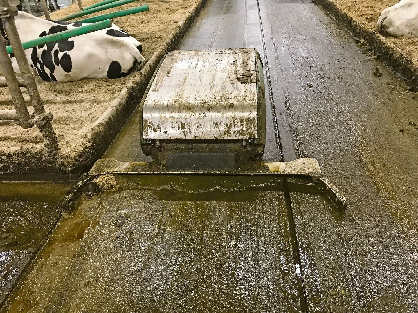 In der Schweiz gerät der Spaltenboden mehr und mehr in Verruf. Verschiedene Kantone diskutieren derzeit schon ein Verbot des Spaltenbodens für Milchkühe. Der Laufbereich muss dann planbefestigt sein. Wir müssen uns also damit befassen, einen Schieber öfters laufen zu lassen, und auch die Möglichkeit eines mobilen Systems ins Auge fassen. Wenn wir Fressstände oder eine Harnsammelrinne einbauen, sind wir für 30 Jahre verbaut. Mit einem mobilen System bleibt man hingegen flexibel und kann sich in fünf Jahren etwas Besseres holen. Ich versuche in meiner Beratungstätigkeit, möglichst viel mit Robotertechnik zu machen. Die stationären Schieber haben den Nachteil, dass sie den Boden glatt schleifen und man ihn anschliessend wieder aufrauen lassen muss, was wiederum zu mehr Emissionen führt.