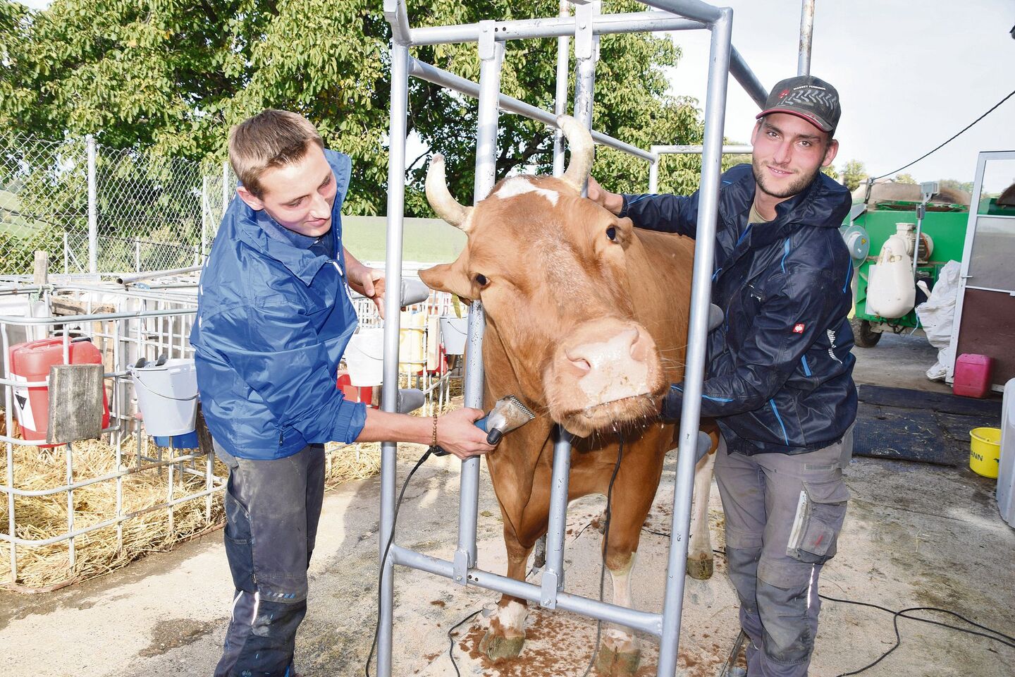 Obwohl sie auf den Schauplatz nach Riedstätt weniger lange zu laufen hätten, ziehen sie doch die Punktierung in Riffenmatt vor. «Es ist die gleiche Genossenschaft, doch 2008 habe ich mich entschieden, nur wegen der Züglete, nach Riffenmatt zu wechseln», gibt Beat Dürrenmatt lachend zu. Und noch etwas Spezielles gibt es auf dem Viehzuchtbetrieb: Hornlos ist bei ihnen passé, sie lassen den Kälbern wieder die Hörner wachsen. «Meine Söhne wollen das, so haben wir uns entschieden, auf das Enthornen zu verzichten», erklärt der Betriebsleiter seine Strategie: Robuste, schön aufgeeuterte SF-Kühe und noch mit einem Kopfschmuck dazu, so hat sich Beat Dürrenmatt einen Namen von verkäuflichen Tieren gemacht.