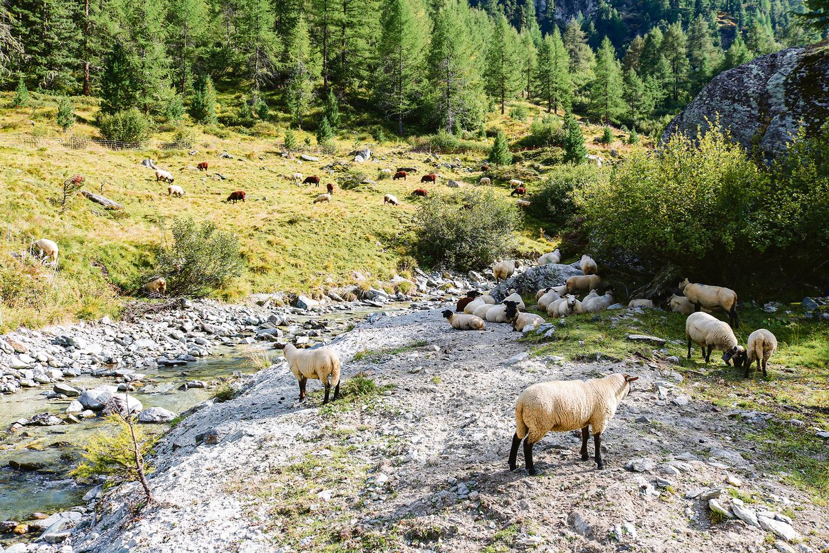 Haltungstyp: Im Winter Stallhaltung, Ablammungen Januar bis März, im Sommer Weide und zirka 90 Tage Sömmerung im Turtmanntal VS.