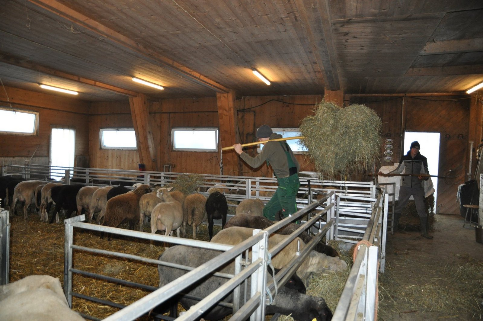 «Meine Schafe sind alles Mischlinge», sagt Emil, während er mit der Gabel Heu in die Futterraufen füllt. Ein Blick in die Herde zeigt Weisse Alpenschafe, Dorper, Texel, Engadiner und zwei behornte Jakobschafe. Auf Letztere ist er besonders stolz. «Diese Tiere können bis zu sechs Hörner bekommen, aber solche mit mehr als vier Hörnern gibt es in der Schweiz nicht», erzählt Emil Jud, der auch einen Jakobschafbock in seiner Herde gehalten hat.