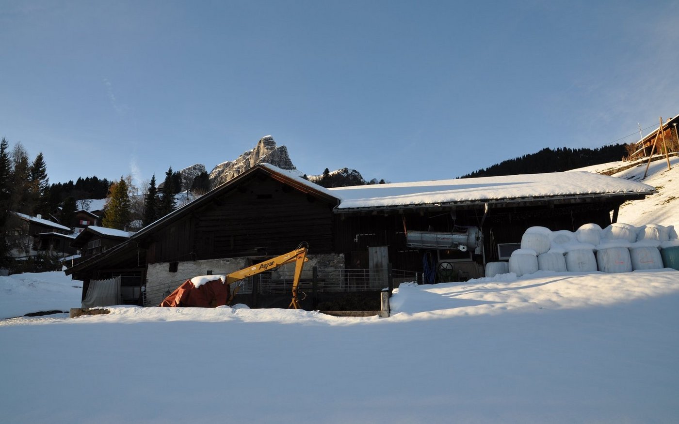 Einer von ihnen ist der Junglandwirt Emil Jud. Sein Betrieb liegt noch etwas höher, zum Wohnhaus und Stall gelangt man nur mit dem «Gator», einem Offroad-Transporter, oder mit einem landwirtschaftlichen Fahrzeug. Alles, was der Betrieb braucht, aber auch produziert, nimmt diesen mühsamen Weg über Luftseilbahn und Gator – das erfordert Planung. Für Emil Jud stellte dies kein Hindernis dar, im Gegenteil: Mit der Übernahme erfüllte er sich einen langjährigen Traum.