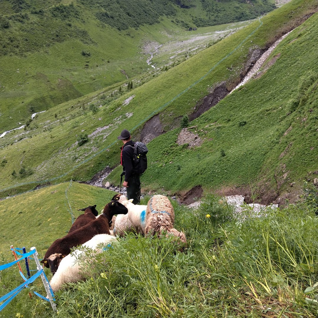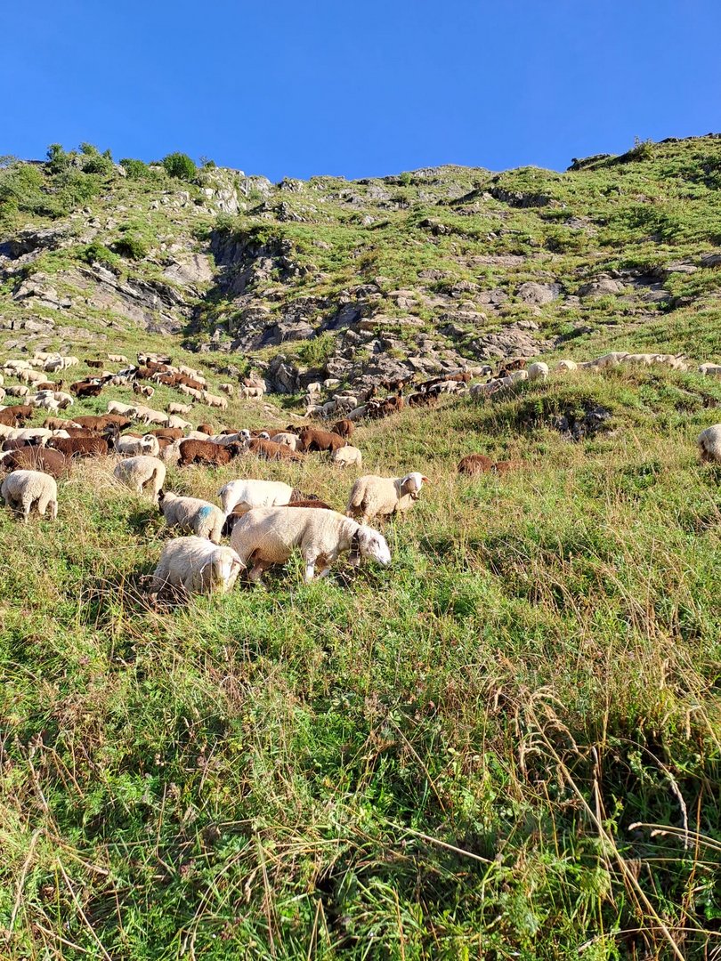 Alp Bösbächi: 82 ha, 490 Schafe 1 Hund