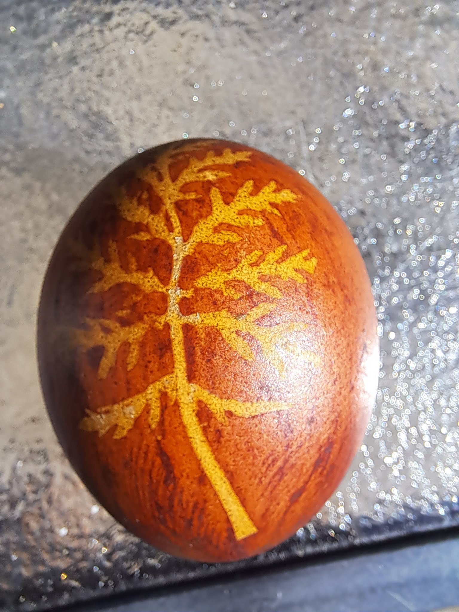 Auf dem Hofgelände steht ein mit einem Ziegeldach überdeckter Verkaufsstand. Wenn man das Fenster öffnet, liegen frische, braunschalige Eier auf grünen Kunststoff-Eierhöckern, daneben locken gekochte, mit Zwiebelschalen gefärbte und mit Kräutern verzierte Ostereier zum Kauf – der Beweis, dass man auch braune Eier österlich verzieren kann. Der Verkaufsstand ist nicht bedient, aber vom Hof her einsehbar. Die Kunden bezahlen bar oder mit Twint. «Ich hatte bisher nur ehrliche Kunden», stellt der Jungbauer fest.
