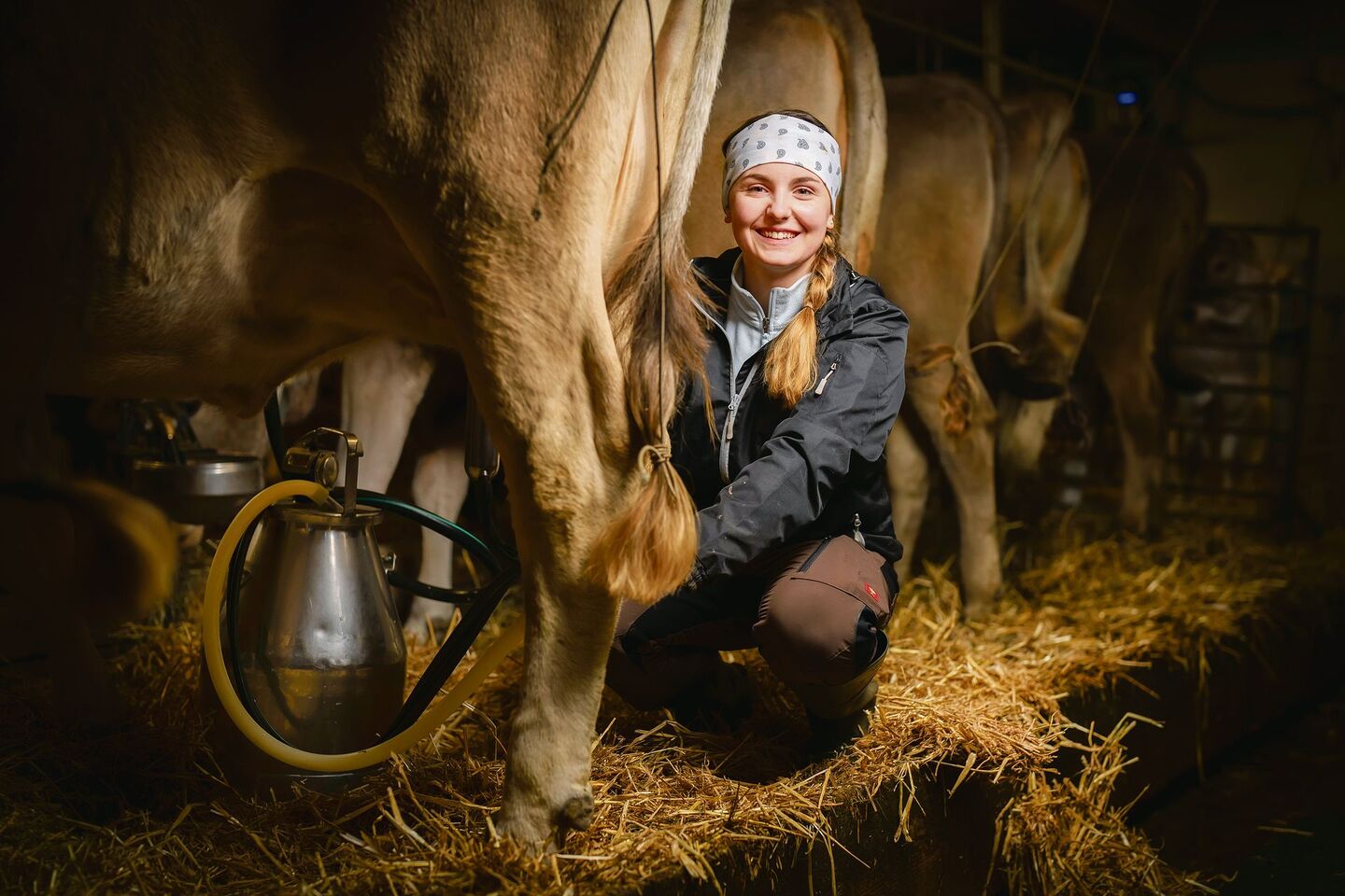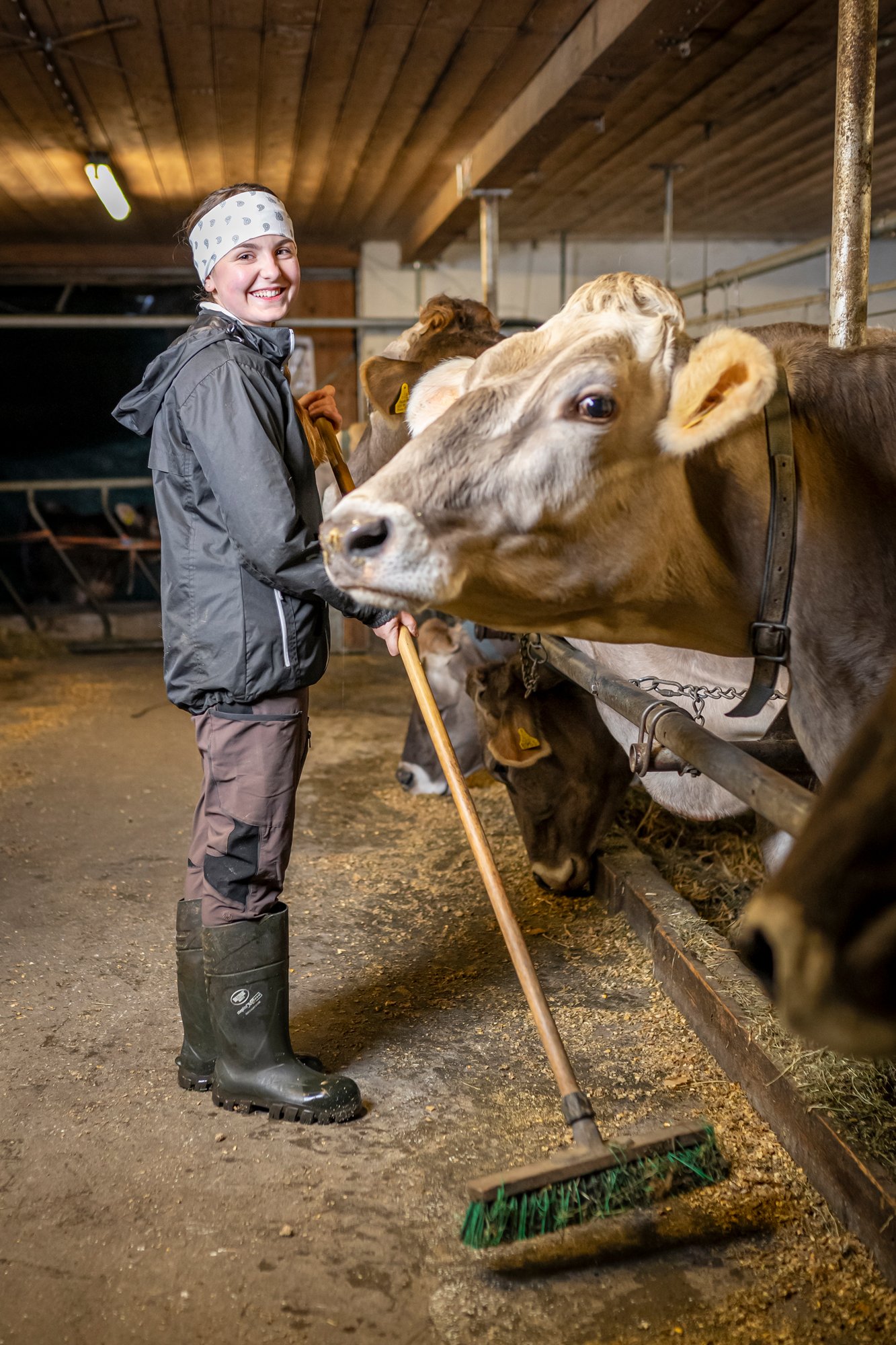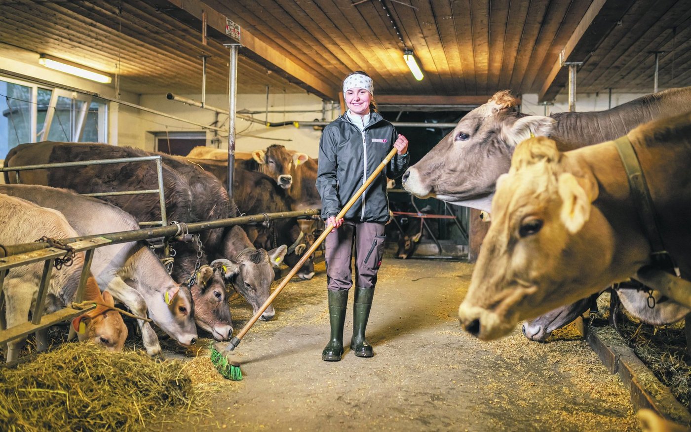«Ich habe Tiere sehr gern und Kühe liegen mir besonders am Herzen. Allen voran natürlich die Braunen», sagt die 22-Jährige lächelnd, während sie mit ruhigen Handgriffen eine Kuh fürs Melken vorbereitet. Dass ein Fotograf sie dabei ablichtet, bringt sie nicht aus der Ruhe. Obwohl erst kurze Zeit im Amt, scheint Sonderegger mit Medienleuten schon so routiniert umgehen zu können wie mit Kühen und Kälbern.