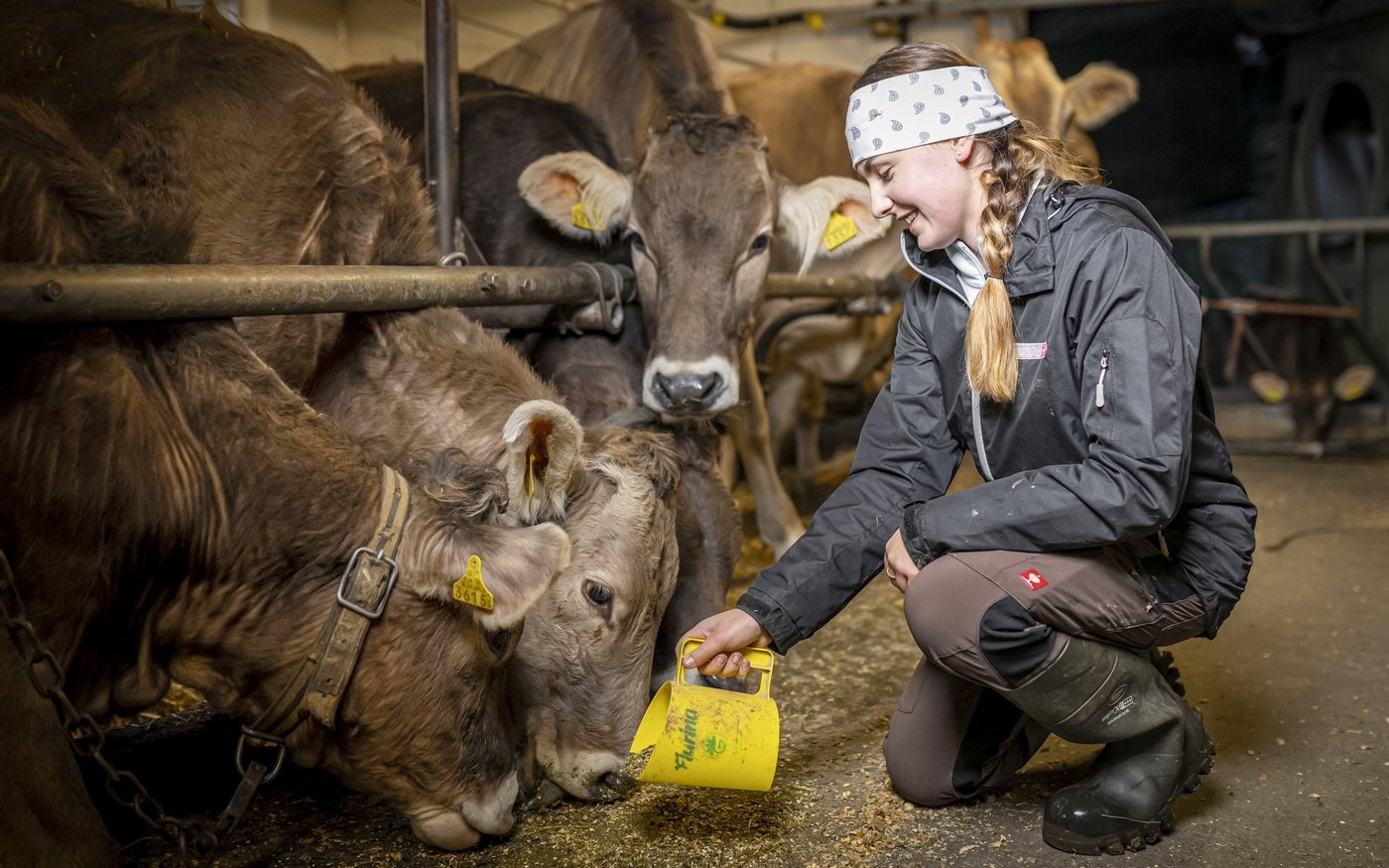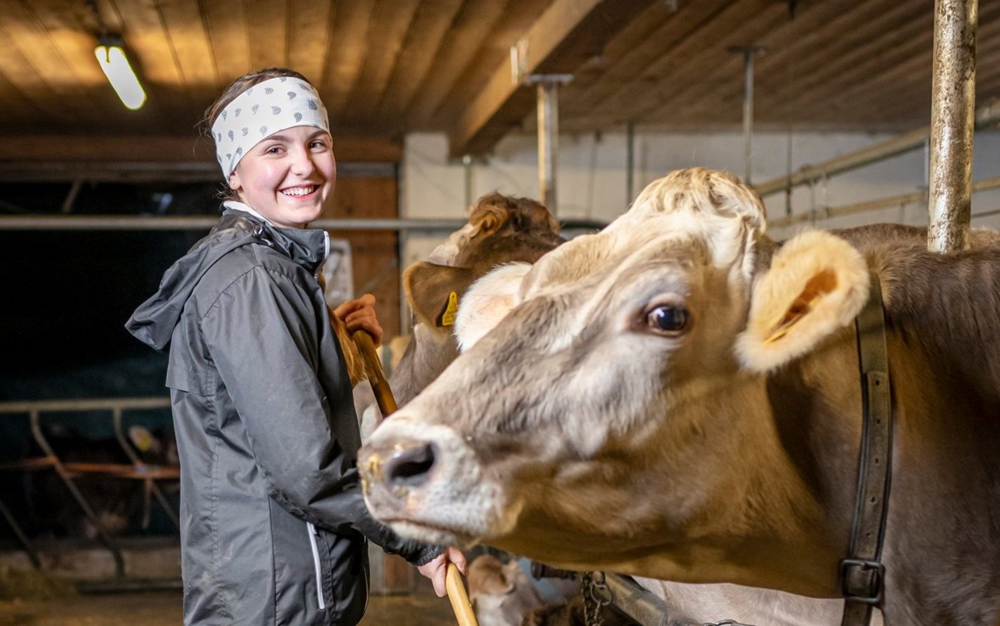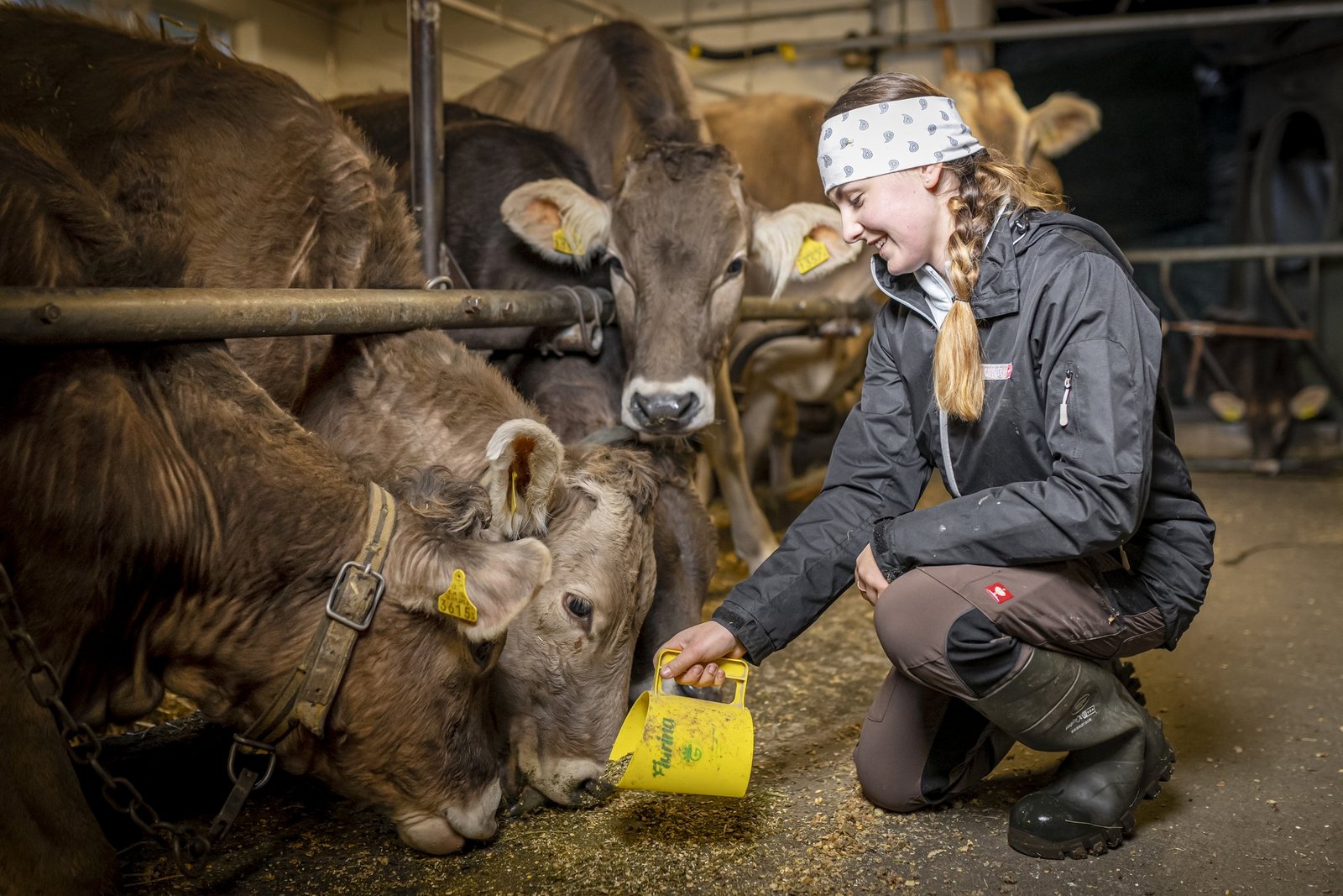 «Ich habe Tiere sehr gern und Kühe liegen mir besonders am Herzen. Allen voran natürlich die Braunen», sagt die 22-Jährige lächelnd, während sie mit ruhigen Handgriffen eine Kuh fürs Melken vorbereitet. Dass ein Fotograf sie dabei ablichtet, bringt sie nicht aus der Ruhe. Obwohl erst kurze Zeit im Amt, scheint Sonderegger mit Medienleuten schon so routiniert umgehen zu können wie mit Kühen und Kälbern.
