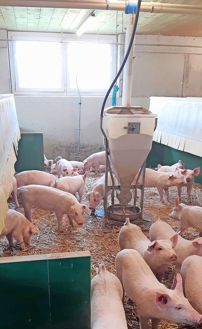Aus hygienischer Sicht sind Trockenfutterautomaten weniger anfällig. Allerdings sollte auch hier darauf geachtet werden, dass die Futterschale regelmässig geleert wird. Zudem bietet das Trockenfutter den Tieren mehr Beschäftigung, was das Risiko von Schwanzbeissen senkt. Besonders wichtig ist, dass die Ferkel jederzeit Zugang zu frischem Wasser haben. Gemäss Tierschutzverordnung müssen den Tieren bei der Trockenfütterung mehr Tränkestellen zur Verfügung stehen als bei der Breifütterung.