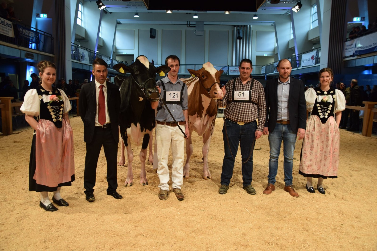 Sie kam, sah und siegte: Thomis Power Flo-Red von Res und Pascal Thomi aus Eggiwil, wiedholte ihren Vorjahressieg und wurde souveräne Emmentaler Starkuh der Rassen RH/HO. Immer wieder rühmte der Richter Marc-Henri Guillaume die Qualität der aufgeführten RH- und Holsteinkühe an der Emmentaler Starparade vom Sonntag, den 26. Februar. Und in der Tat: Einmal mehr beeindruckten die Züchter aus dem Emmental, dass sie das Handwerk des Züchtens verstehen. Als Schöneuterkuh der RH/HO kürte Guillaume die Agent-Tochter Güdel's Agent Wedding auch von Res und Pascal Thomi aus Eggiwil. Den Titel Starzüchter RH/HO, gewann Rolf Künzi aus Süderen mit seinen Kühen Künzi's Power Alina und Künzi's Lotus Holly.