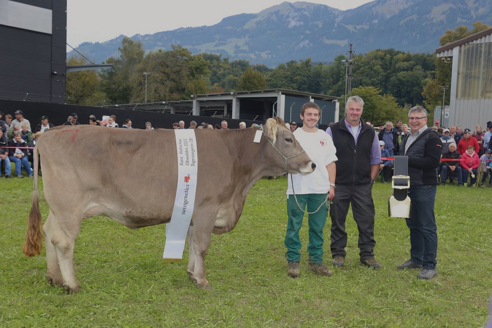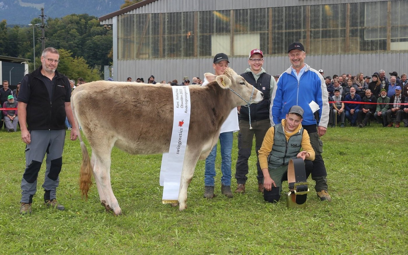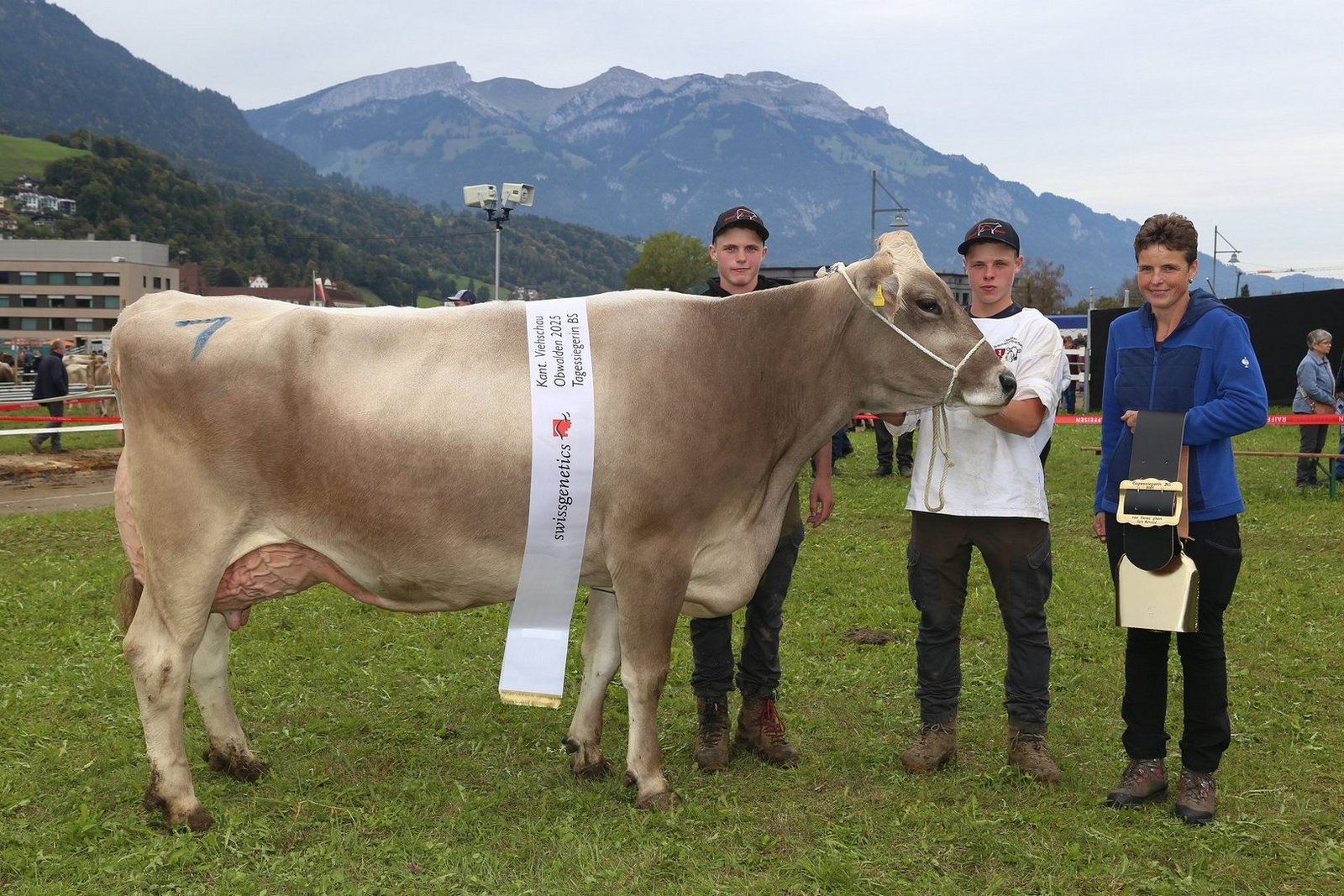 Gross war die Freude auch bei Familie Ettlin-Abächerli aus Kerns OW, nachdem ihr Jungtier Belinda zur Rindermiss OB gekürt wurde. Freude und Stolz waren beim Erfolg von Belinda mehr als berechtigt, denn sowohl ihre Mutter Materazzi-Maya als auch ihr Vater Harlei-Booster stammen aus der Zucht von Familie Ettlin-Abächerli.