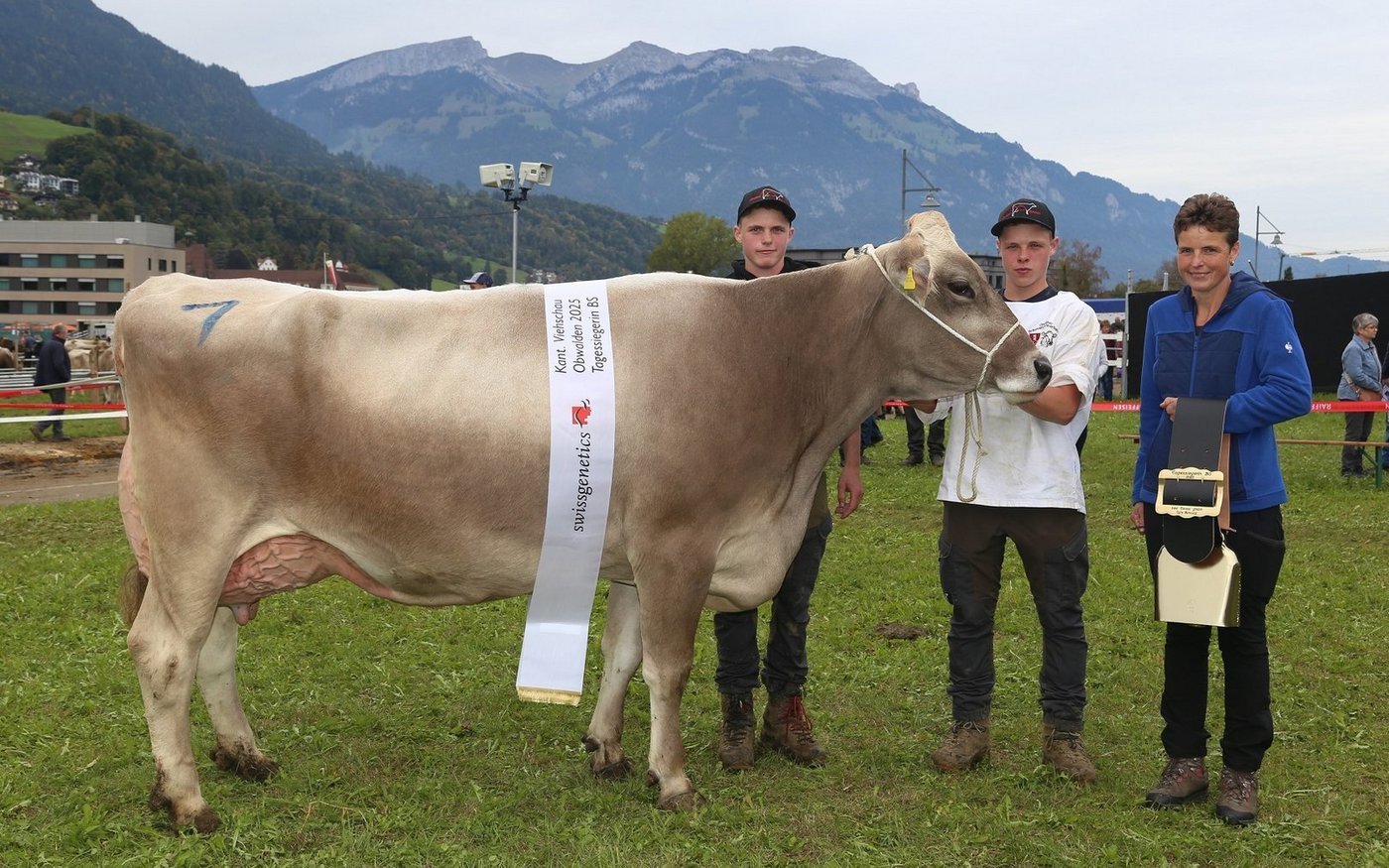 Ähnliches gilt auch für das Siegertier der BS-Rindermisswahl. Die junge und elegante Amelie kommt aus der Zucht der Besitzerfamilie Hans Britschgi aus Stalden und auch Amelies Vater Adee stammt aus einem Obwaldner Stall. Miss Genetik BS wurde Optimal-Capri von Kobi Kathriner aus Sarnen OW. Zum schönsten Stier und damit zum Mister wurde der imposante Jongleur-Jubilar von Enz Daniel, Giswil OW, gekürt.