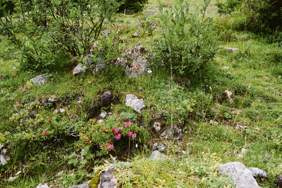 «Das ist meine Corona-Arbeit», sagt Ruedi Krähenbühl aus Horrenbach-Buchen, Bern und lacht. Neben dem Weg an den steilen Hängen liegen grosse Haufen mit dürrem Gestrüpp. «Es ist extrem, wie schnell ein Berg verbuscht, wenn man nichts dagegen unternimmt», erzählt er und zeigt auf Stauden, die höher sind als er und innerhalb von vier Jahren wuchsen. Mittendrin noch ein letzter Stock Alpenrosen, der wegen des Lichtmangels eingehen wird. «Vor allem Weiden und Grünerlen sind hier sehr schnell auf dem Vormarsch und bedrohen die Vielfalt der Alpweiden.»