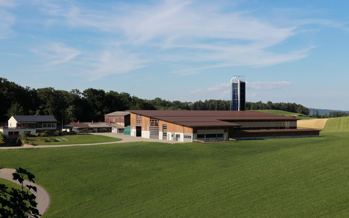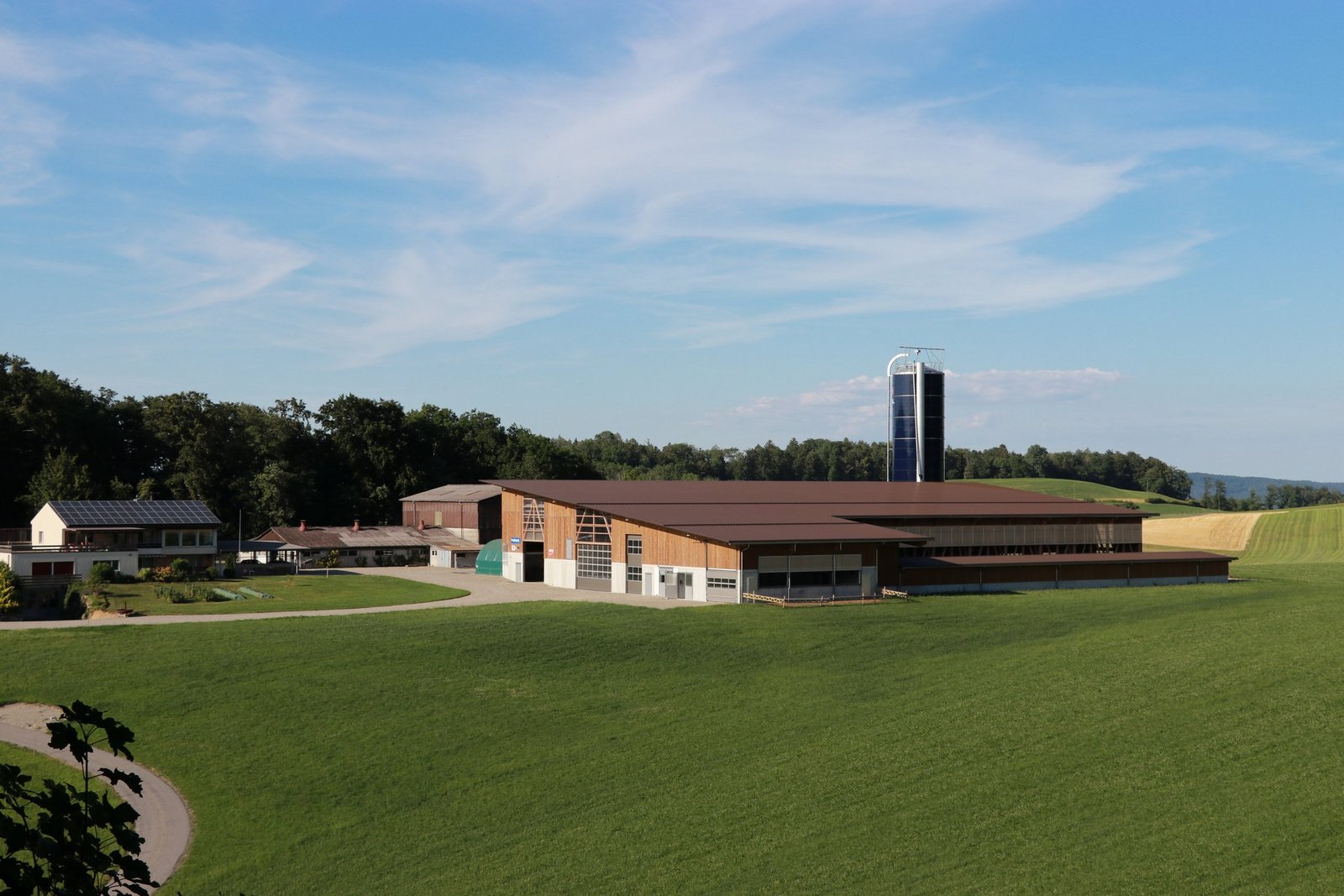 «Irrsinnig», sagt Sandra Belser. Sie strahlt – es ist absolut positiv gemeint und ihre Antwort auf die Frage, wie sich im neuen Stall arbeiten lässt. Dass sich auf dem Wolfig im aargauischen Wölflinswil etwas Grosses getan hat, zeigt schon von Weitem der 920-m3-Silo an. Der blaue Turm ragt neben dem Neubau in die Höhe, in den die Herde mit dem Präfix Wolfhead vor acht Monaten eingezogen ist. Aus dem Anbindestall mit Rohrmelkanlage in einen Boxenlaufstall mit automatischem Melksystem – ein grosser Wechsel.