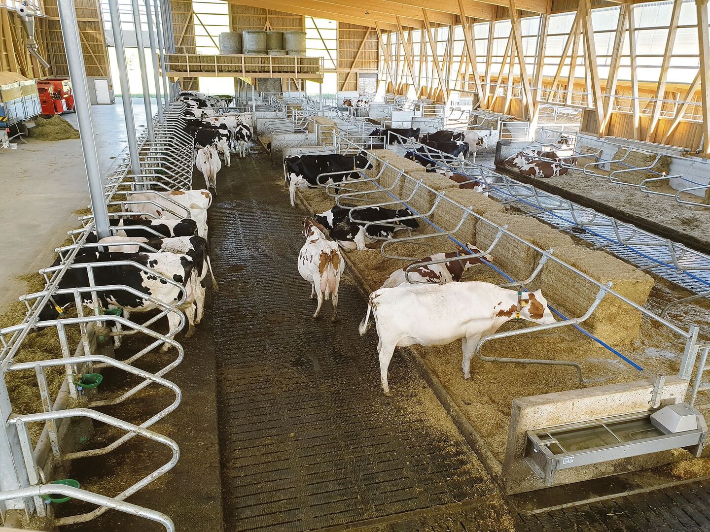 Es ist ein äusserst komfortabler Stall, den Belsers ihren Holstein- und Red-Holstein-Kühen bieten. Im Gegenzug setzen sie auf hohe Milchleistung. Vor dem Umzug lag der Schnitt bei über 10'000 Kilogramm Milch, heute sind es trotz 80 Prozent Erstmelken immer noch rund 9000 Kilogramm. Gestartet wurde im vergangenen November mit 28 laktierenden Tieren, heute werden bereits 43 Kühe gemolken. Die Herde wird sukzessiv durch eigene Nachzucht vergrössert und der Verkauf von Nutz- und Zuchtvieh danach wieder aktiviert.