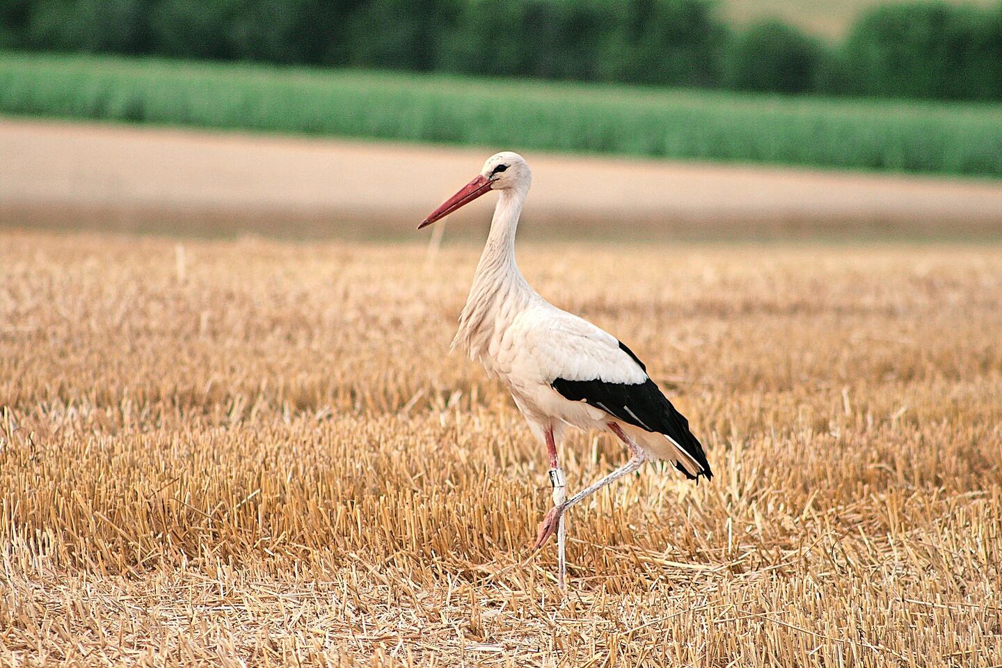 Häufig hat man auf dem Traktor hochbeinige Begleitung: Weissstörche staksen direkt hinter der Maschine und suchen im frisch bearbeiteten Erdreich oder im gemähten Gras nach Nahrung. Insekten, Kleinsäuger, Amphibien und Würmer stehen auf ihrem Speiseplan – was sie auf Wiesen, in Feuchtgebieten oder eben im Ackerboden finden.