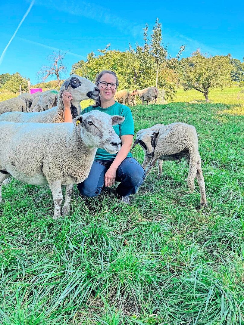 Ich mache mich auf den Weg zur anderen Gruppe. Unser Charolais-Swiss-Bock Charly hat bereits gute Arbeit geleistet, es sind einige Auen farblich markiert. Ich notiere mir die Ohrmarkennummern, damit ich den theoretischen Geburtstermin ausrechnen kann. Nach rund 15 Tagen wechsle ich die Farbe, mit der die Brust der Schafböcke angemalt ist. Damit zeigt sich, welche Auen noch einmal nachgedeckt werden.