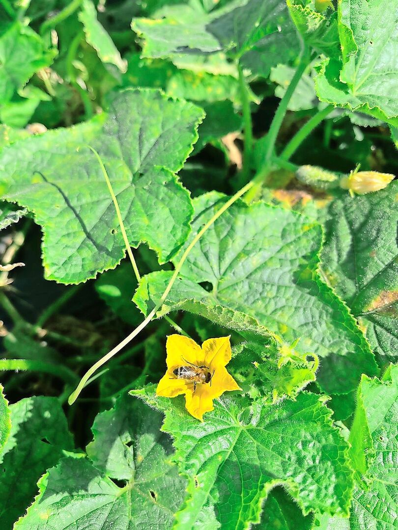 Die Essiggurkensaison neigt sich langsam dem Ende zu. Die Regenphase haben die Pflanzen überraschend gut überstanden. Der Ertrag ist mit den sommerlichen Temperaturen auf einem erfreulichen Niveau. Kurzfristig hatten wir einen etwas hohen Anteil an übergrossen Gurken, das haben wir wieder in den Griff bekommen.