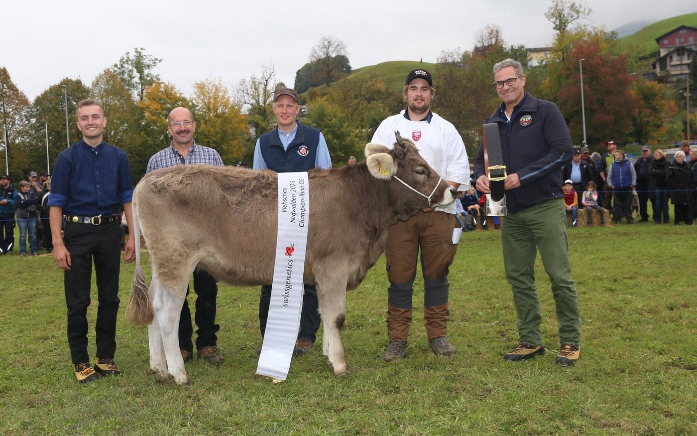 Petrus war den Nidwaldner Züchtern wohlgesinnt, es herrschte perfektes Viehschauwetter. Das OK der Kantonalschau Nidwalden stand dieses Jahr erstmals unter der Leitung von OK-Präsident Christian Odermatt, der das Amt in diesem Jahr von seinem Vater Franz Odermatt übernommen hat. «Dass ich durch meinen Vater bereits in den letzten Jahren Einblick in diese Aufgabe erhalten habe, war für mich ein grosser Vorteil», sagte Christian Odermatt, der in Ennetmoos einen Milchwirtschaftsbetrieb führt. Dank der Unterstützung der anderen OK-Mitglieder und der vielen Helfer vom Nidwaldner Bäuerinnenverband, der Nidwaldner Landjugend, der Jungzüchtervereinigung NW/OW und des Nidwaldner Viehzuchtverbands sei der Anlass sehr zufriedenstellend über die Bühne gegangen.