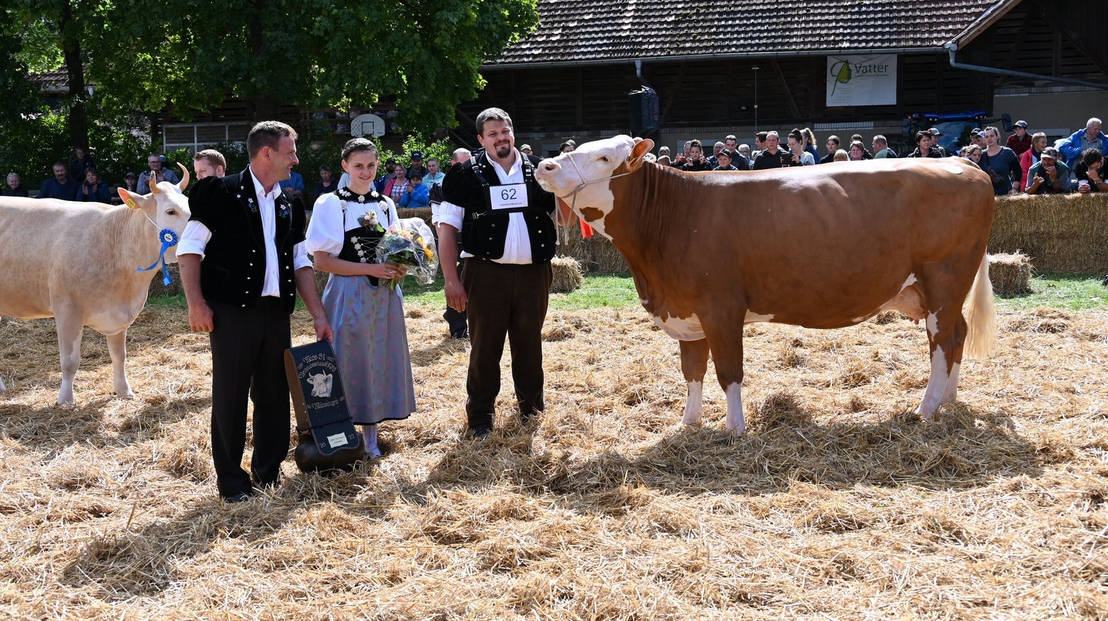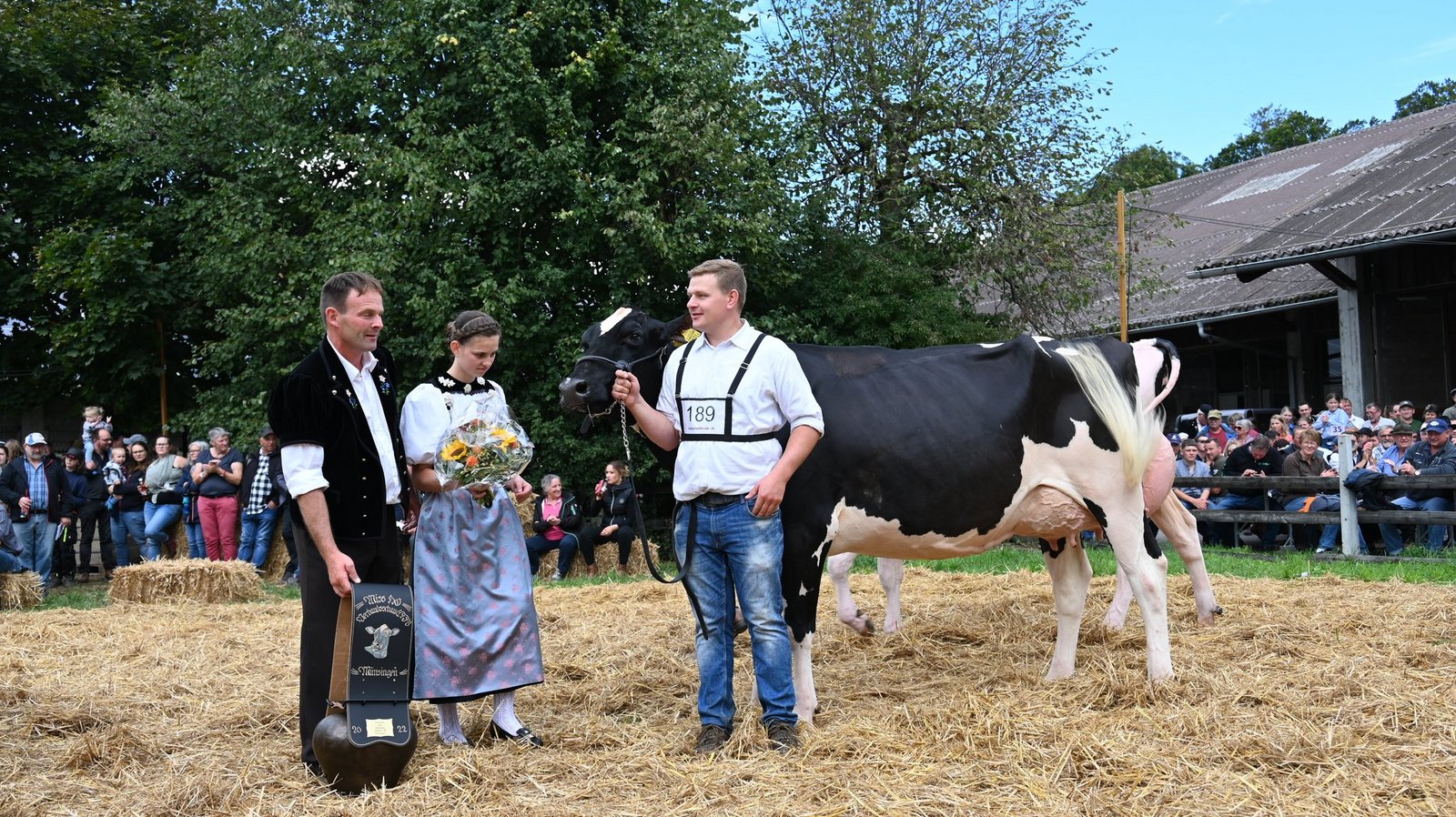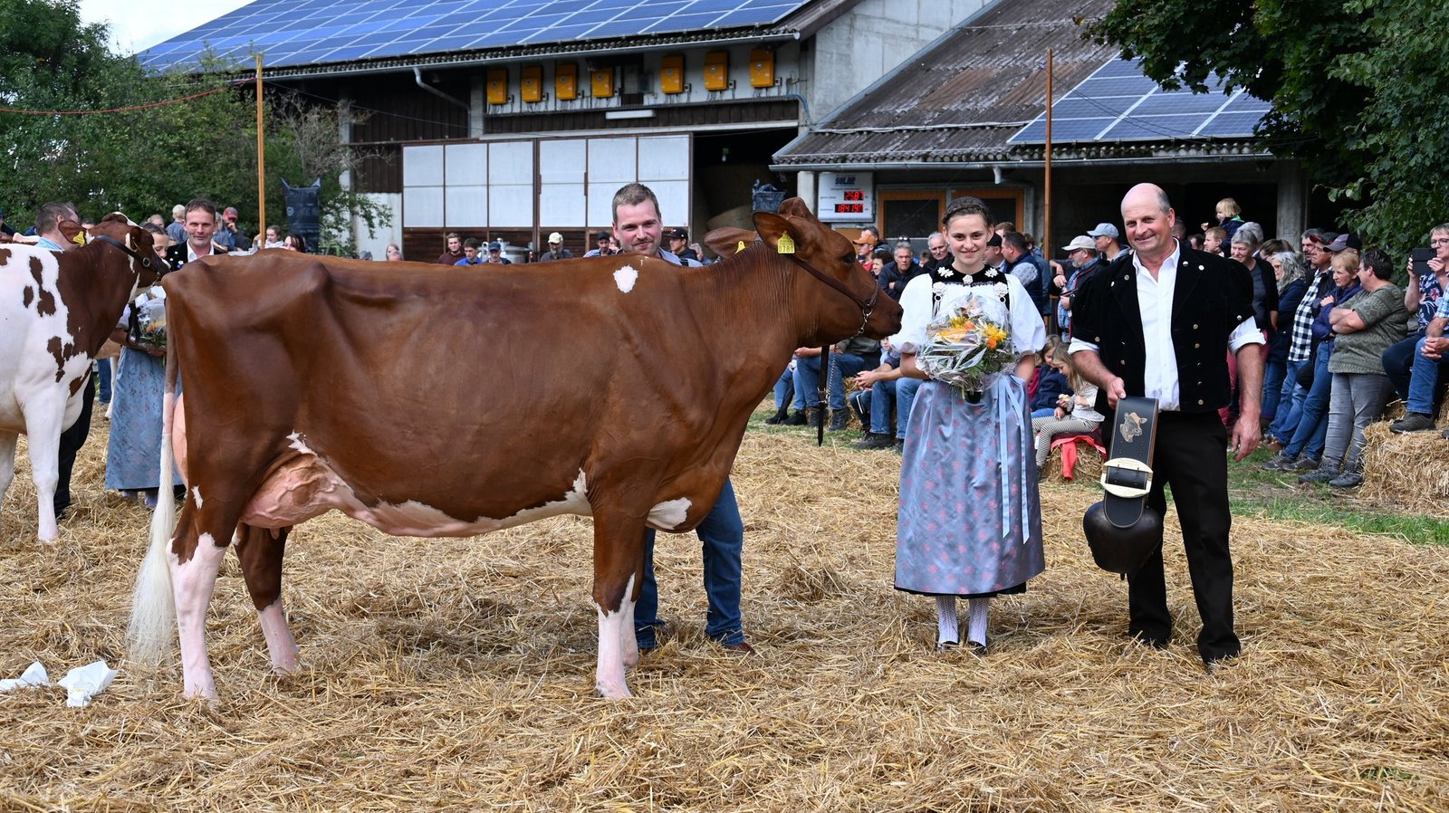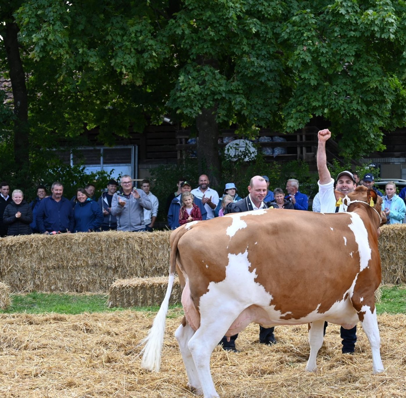 «Ein hammer Euter, enorm viel Ringpräsenz, eine Top-Kuh, eine sehr homogene Kategorie, eine sehr vorzügliche Kuh.»Die beiden Richter Christian Stergmann und Bruno Beyeler zeigen sich heute Samstag 10. September, an der Emmentalischen Verbandsschau auf dem Schwand in Münsingen begeistert. «Meine Erwartungen an die Qualität wurden gar übertroffen», betont Stegmann. Und Beyeler doppelt nach: «Die Emmentaler haben gezeigt, was sie zu bieten haben.» Damit könne national problemlos mitgehalten werden. Es fällt den beiden daher auch nicht leicht, die Miss Emmental zu bestimmen. Das Rennen macht schlussendlich Oberli`s Jordy Leonie von Beat Oberli, Süderen. Sie holte sich zuvor den Miss-Titel bei den Red-Holstein-Kühen. «Wir haben lange diskutiert und sind schlussendlich auf denselben Nenner gekommen», betont Bruno Beyeler. «Die Siegerin hat das gewisse Etwas mehr.» [IMG 13]