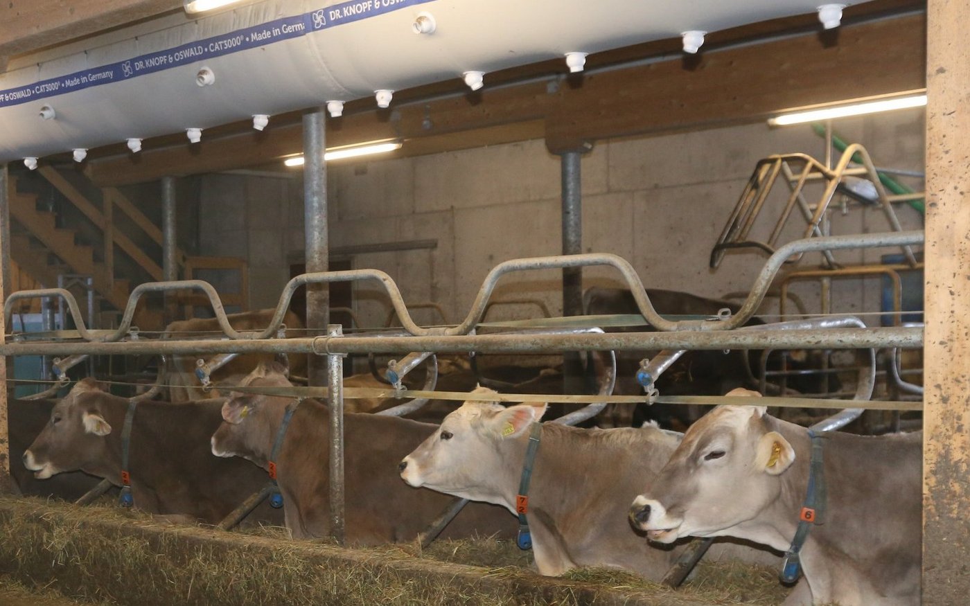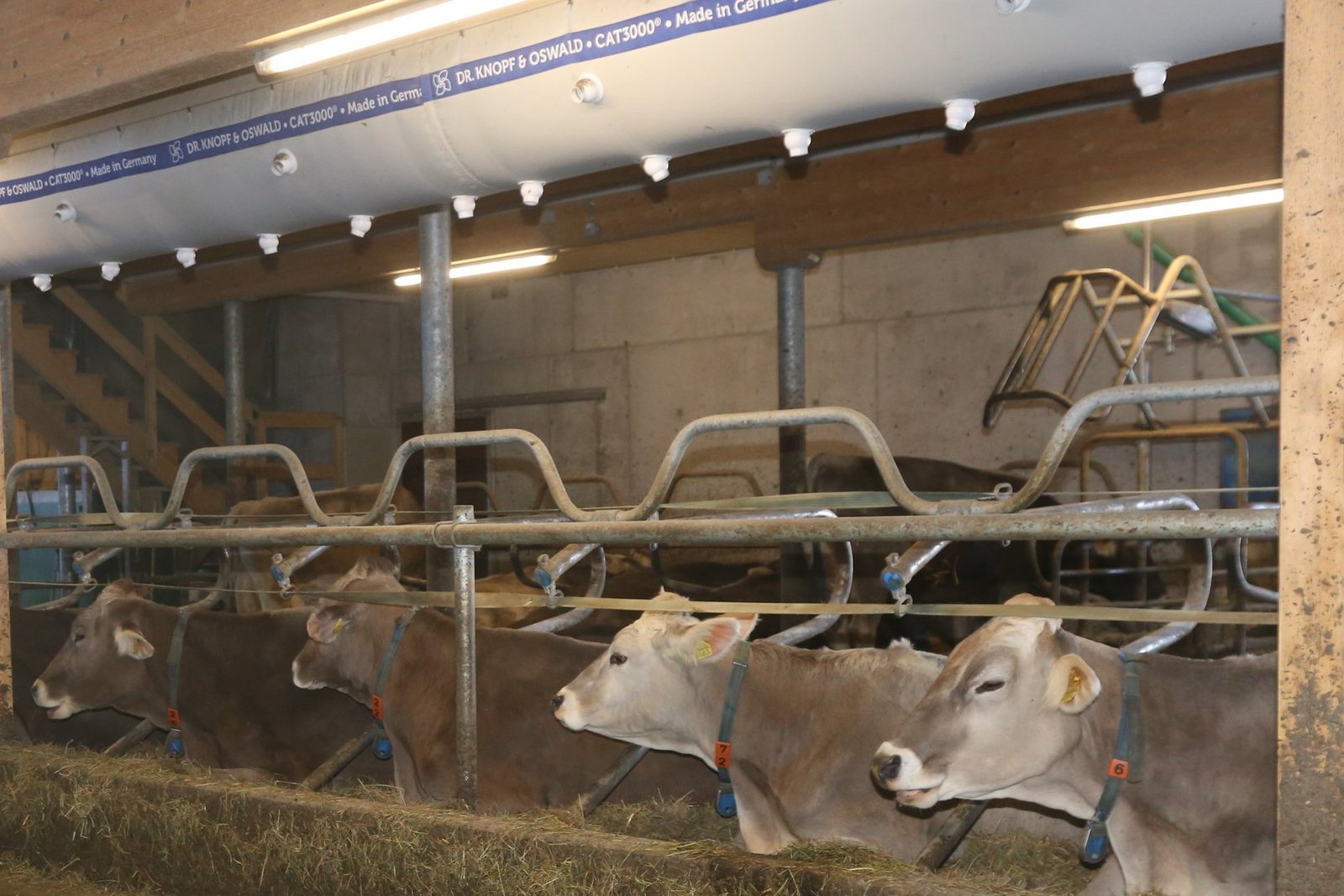 Freude macht den Niederbergers nicht nur ihr Vieh, auch der dreijährige Laufstall gefällt mit viel Licht, Luft und Kuhkomfort. Die Familie Niederberger baute zwar einen Laufstall, Betriebsleiter Andreas Niederberger ist aber nach wie vor von den Vorzügen eines optimierten Anbindestalles überzeugt: «An unserem alten Anbindestall mit Strohbett hatte es zumindest die rangniedrigeren Tiere sicher nicht schlechter.» Der neue Laufstall wurde hauptsächlich darum erstellt, um den Anforderungen des Grünen Teppichs nachkommen zu können. «Wir haben zu wenige geeignete Weideflächen in Hofnähe, um die RAUS-Richtlinien erfüllen zu können.»