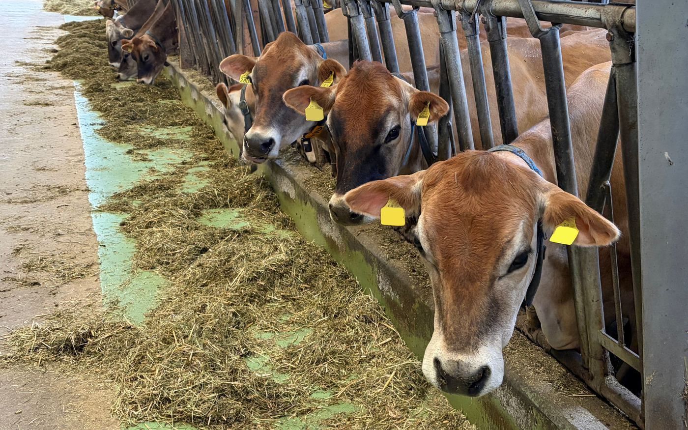 Marcel Müller hatte den Milchwirtschaftsbetrieb 2019 von seinen Eltern übernommen. Gleich zu Beginn stellte er Martina Ott an, die er seit seiner Jugendzeit kannte. Die Landwirtin sollte fortan für die Tierhaltung zuständig sein. Die beiden teilen ähnliche Vorstellungen und begannen, den Betrieb neu aufzustellen: Dabei entschieden sie nicht nur, auf regenerative Landwirtschaft zu setzen, sondern tauschten auch nach und nach die Braunviehherde durch Jersey-Kühe ein. Nicht nur, weil die leichte Rasse den Boden schont. «Jersey weisen zudem die beste Ressourceneffizienz vor», sagte Ott. Zudem seien sie langlebig und hitzetolerant.