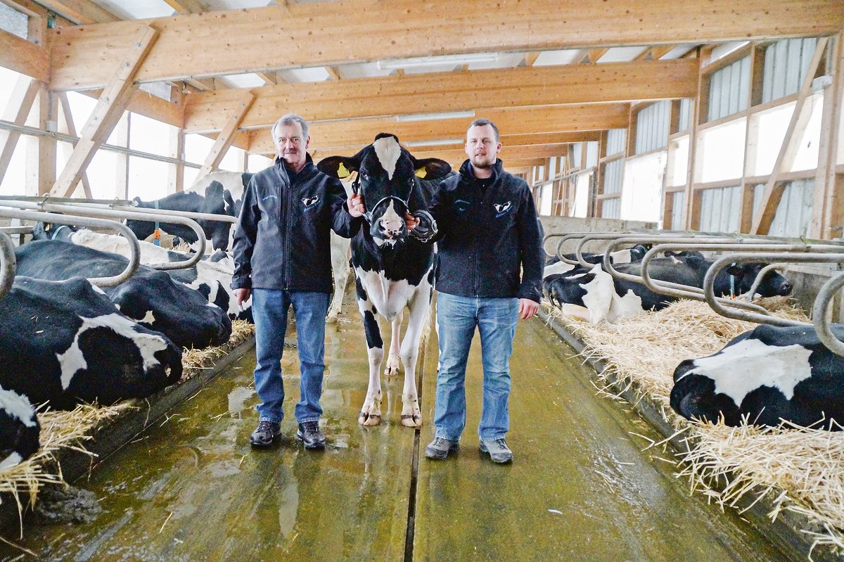 «Exterieur, Leistung, Funktionalität, Fruchtbarkeit und Langlebigkeit sind Kriterien eines kompletten Kuh-Pakets», erklärt der Züchter. «Ich bin froh, dass viele unserer Kühe trotz hoher Leistungen alt geworden sind, wie zum Beispiel unsere 15-jährige Mirza mit einer Lebensleistung von 110 000 kg Milch», hält Alain Jungo fest. Aber auch die Qualität der 31 Milchkühe ist beachtlich; 23 davon sind im Verlauf der Bemessungsjahre (2002 bis 2017) in die Kategorie «Exzellent» (über 90 Punkte) linear eingestuft worden. Dies zeigt doch, dass die Tierbesitzer für züchterische Massnahmen über fachliche Kompetenz verfügten. Dabei hatten die Betriebsleiter in all den Jahren auch eine glückliche Hand bei de Anpaarung und der Selektion ihrer hochklassigen Holsteinherde.