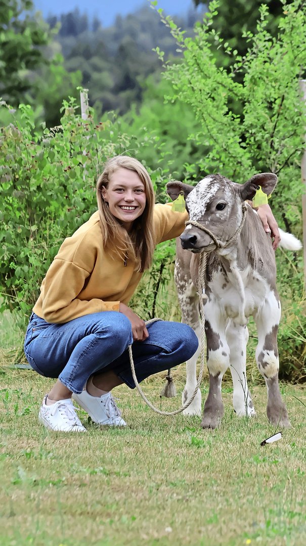 Mein Herz schlägt fürs Braunvieh – und ganz besonders für die Blüem-Kühe, seit ich zum ersten Mal eine gesehen habe. Den Anfang machte das wunderschöne Blüem-Kalb Happy, das ich zum Geburtstag geschenkt bekam. Seither sind auf dem Familienbetrieb meiner zukünftigen Schwiegereltern auch Blüem-Kühe in der Brown Swiss Herde zu sehen. Da es meine erste Semesterarbeit war, wollte ich bewusst ein Thema wählen, das mich auch persönlich begeistert, denn wenn Herzblut drinsteckt, fällt einem das Schreiben gleich viel leichter.