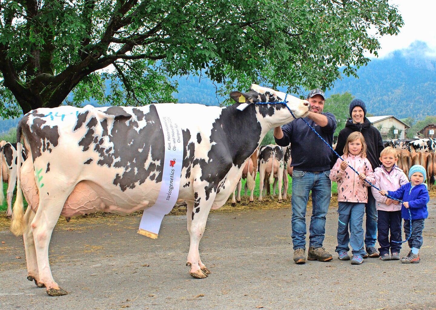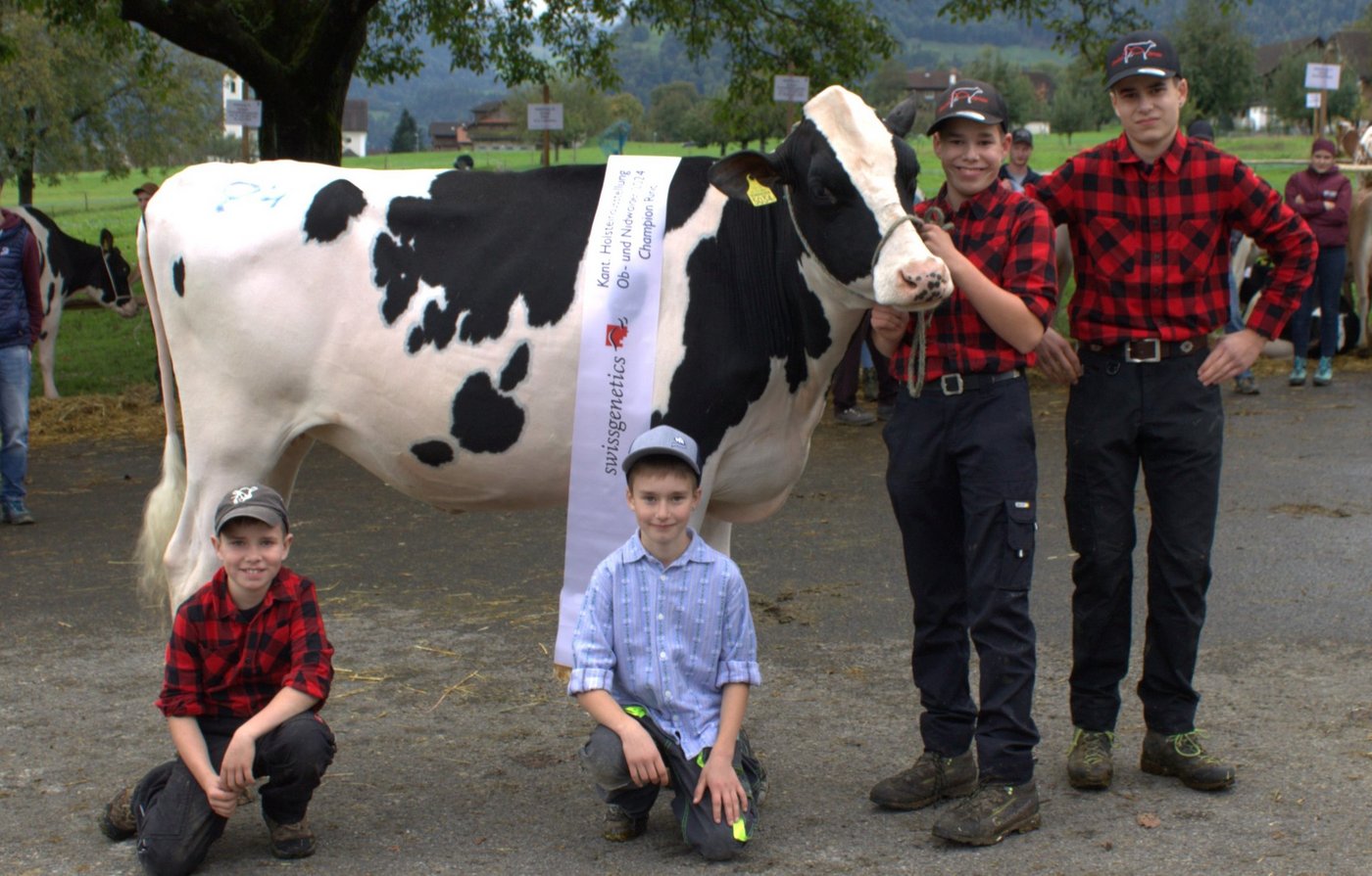 Bei der Holstein-Rindermisswahl konnte sich Primenov Amber von Stefan und Nadia Rohrer, Flüeli-Ranft, durchsetzen. Gross war die Freude im Moment der Bekanntgabe der Miss bei den drei Söhnen und beim Göttibub von Stefan und Nadia Rohrer. Die vier Jungs übten mit ihren Tieren während Tagen für diese Viehschau. Über die auf einem Luzerner Holstein-Betrieb aufgewachsene Nadia Rohrer kam die Holstein-Rasse auf den Hof im Flüeli-Ranft. Mittlerweile stehen neben Braunvieh mehrere rote und schwarze Rinder und Kühe im Stall.