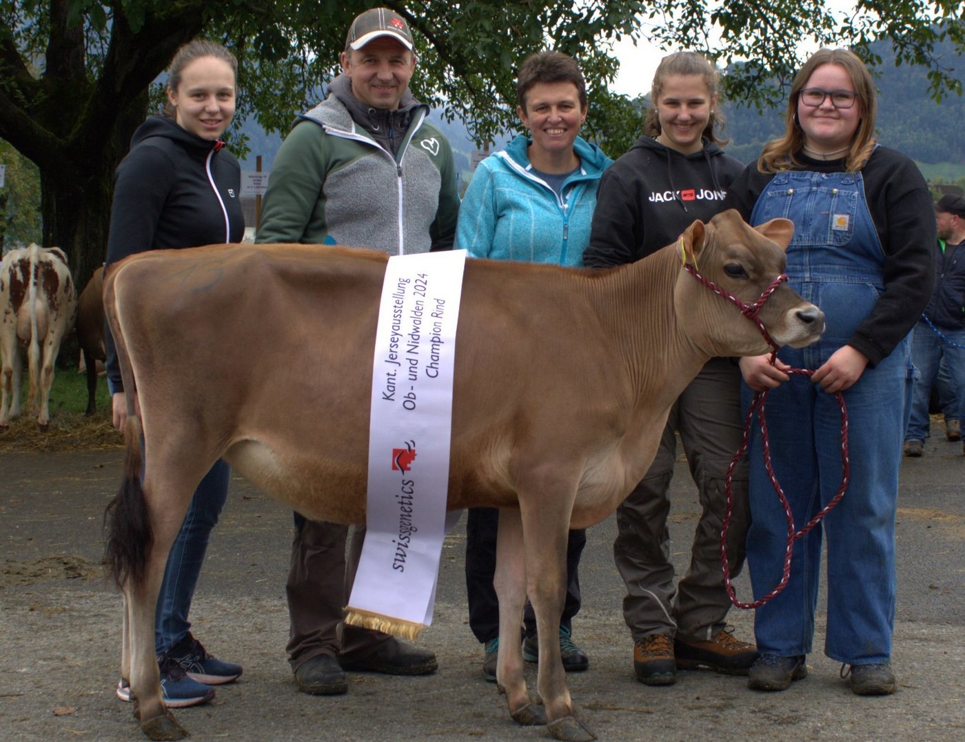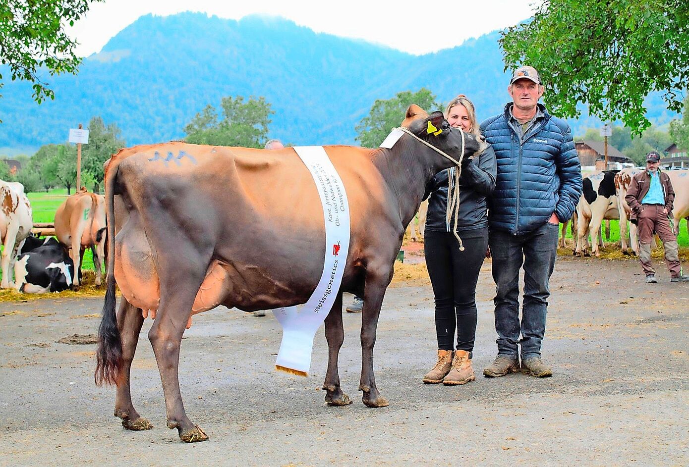 Wer schöne Jersey-Kühe sehen möchte, der komme an die Viehschau nach Giswil. Diese Aussage höre man oft, erklärte der Richter Beat Oberli bei seiner Arbeit im Ring. Die schönste Jersey-Kuh war für den Berner Kuhexperten an diesem Tag Magician Jane von Jasmin und Christof Küchler, Kägiswil. Die letztjährige Honorable Menion setzte sich bei der Championwahl Jersey gegen Casino Cheyenne von Daniel Sigrist, Alpnach Dorf, und der sehr jungen Victorious Sheeny von V-Cows, Giswil, durch. Sowohl Cheyenne als auch Jane holten sich in ihren Altersklassen jeweils auch den Schöneutertitel. Bei den jungen Jersey-Kühen wurde Victorious Very von Christof und Jasmin Küchler für das beste Euter ausgezeichnet.