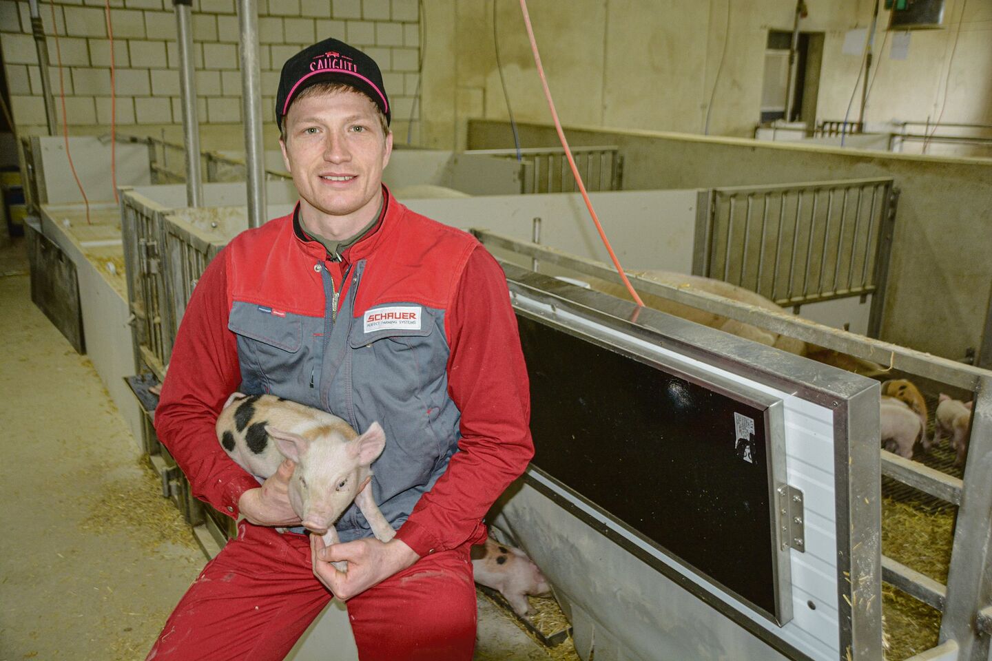 Im Stall arbeitet nebst Simon Bernhard auch sein Vater. «Der Stall ist so eingerichtet, dass die Arbeit am Wochenende von einer Person bewältigt werden kann», so Bernhard. In den Abferkelbuchten hat er zwar eine Kamera; wenn der Hauptharst am Abferkeln ist, steht er aber nachts auf. Trocken müsse es sein und die Ferkel sollen rasch an eine freie Zitze. Wenig Ferkelverluste sind ihm wichtig.